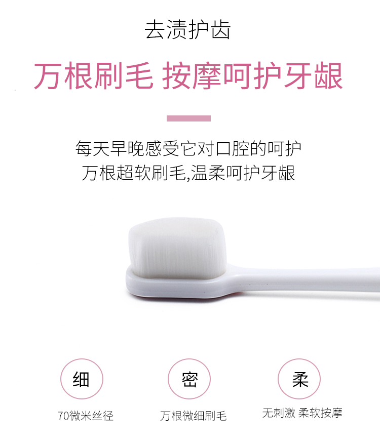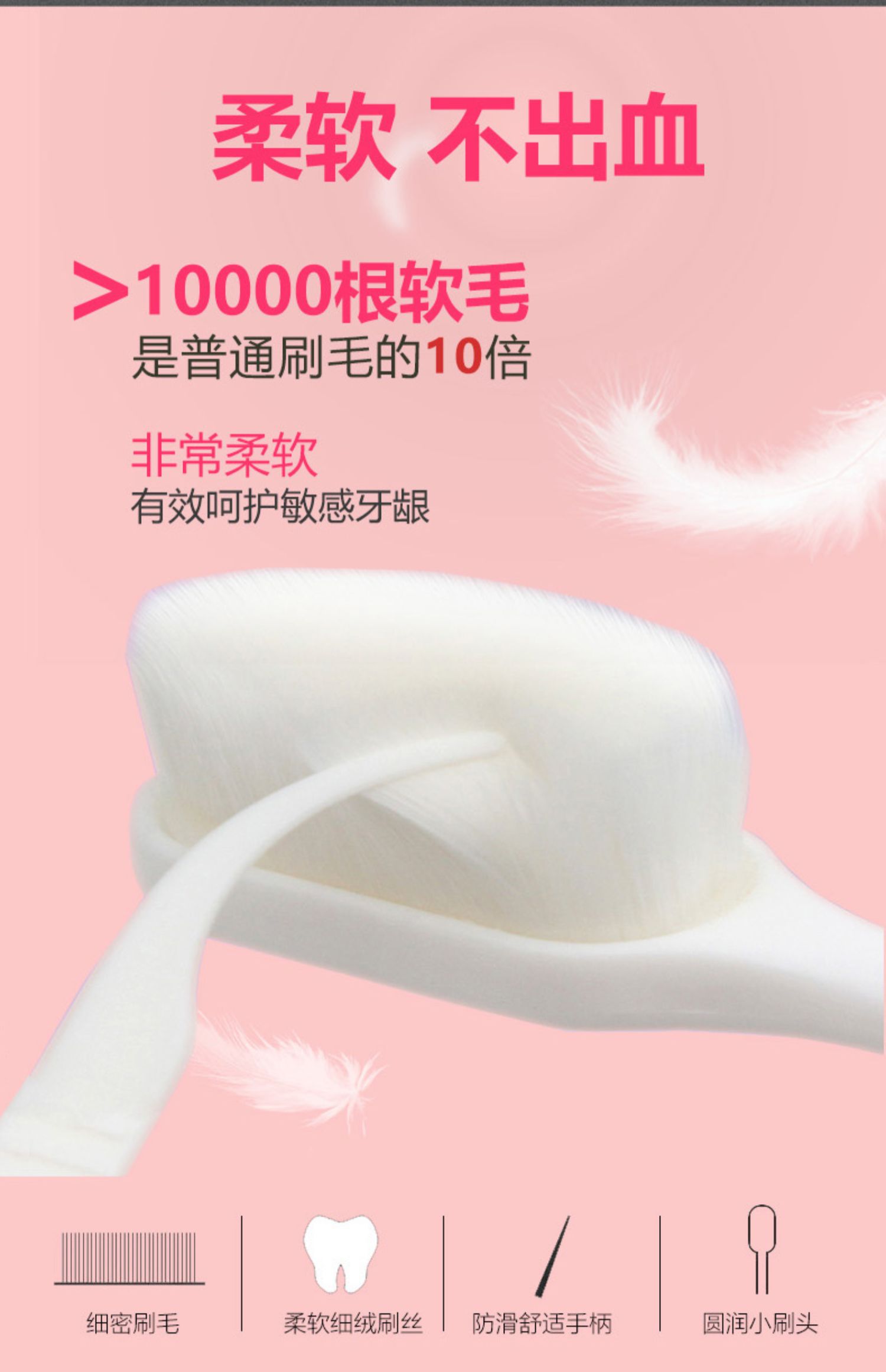 牙龈出血?口气不清新?推荐这款敏感人群专用牙刷!1万根软刷毛,超柔软,彻底清洁口腔死角,护牙,不伤牙!背后还有凸起设计,能清洁舌苔,还你一口健康漂亮大白牙!