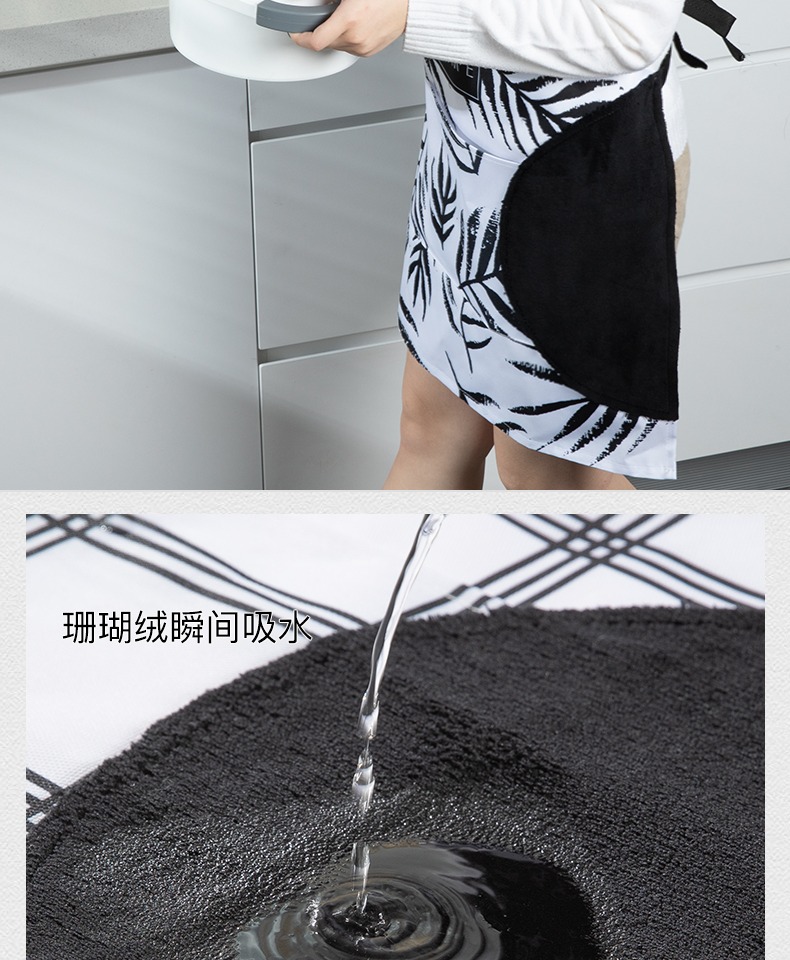 进厨房神器,家用厨房时尚围巾!采用厚实牛津布,防水又防油,下厨不再满身污渍,两边珊瑚绒擦手巾,随手擦干手,超方便~还有大口袋,可放手机啥的