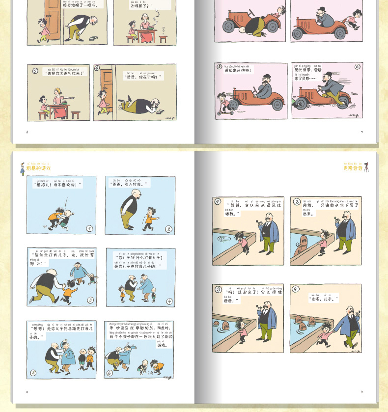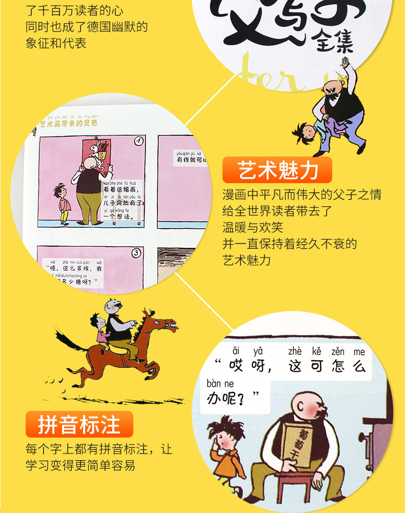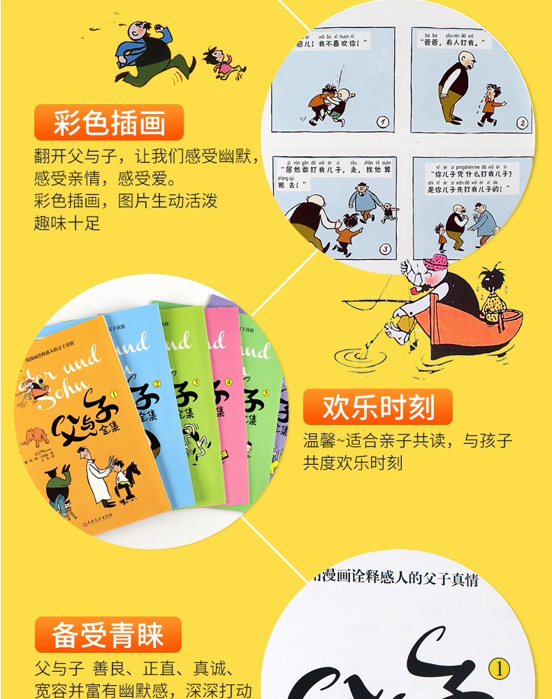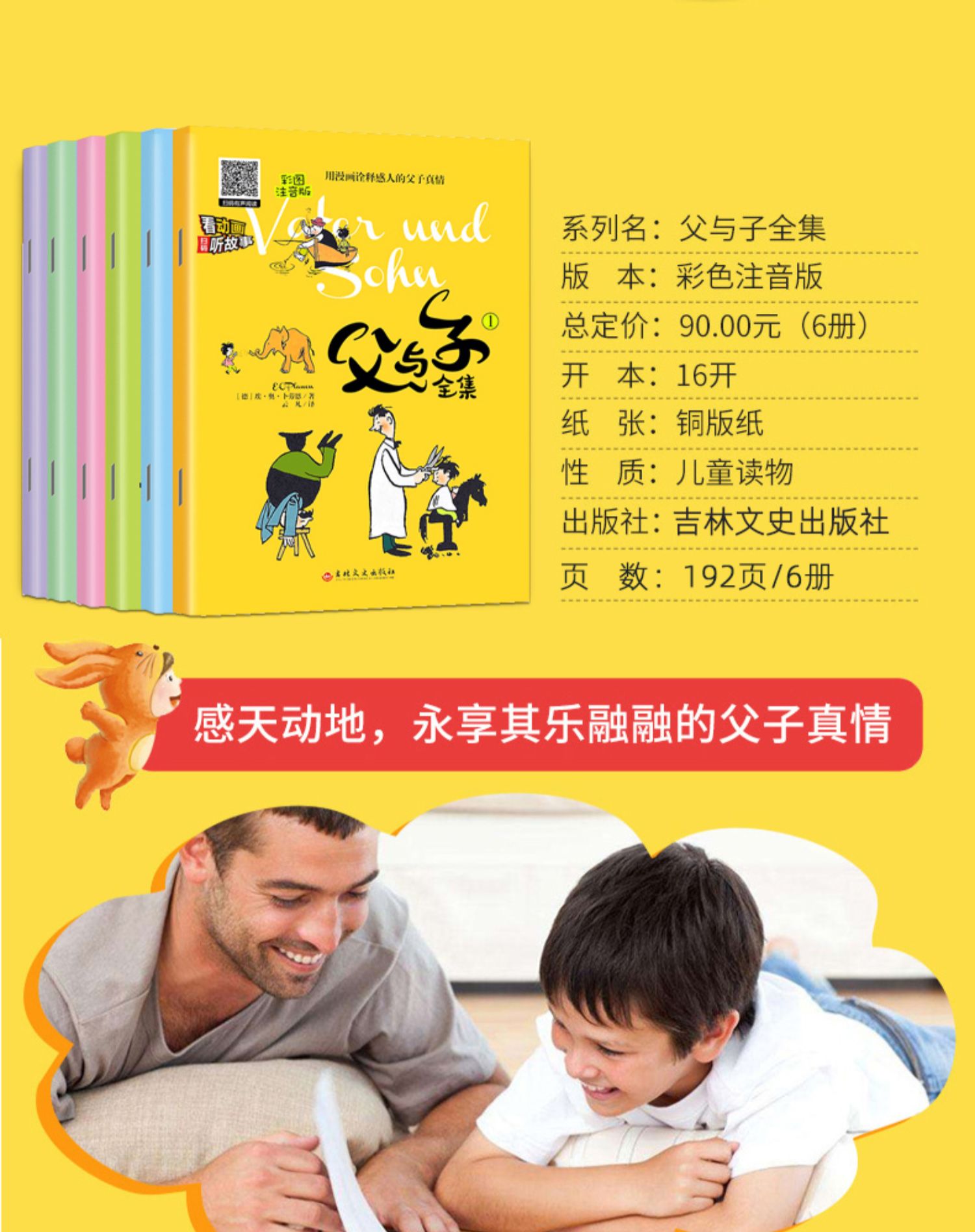 世界经典儿童漫画绘本,德国名著,父与子,全6册,完整版无删减,宝妈必备宝宝睡前故事书。16开大版本,全彩印刷,插图精美,文字带有注音,可有声伴读,感动世界的父子真情,畅销世界的不朽杰作。