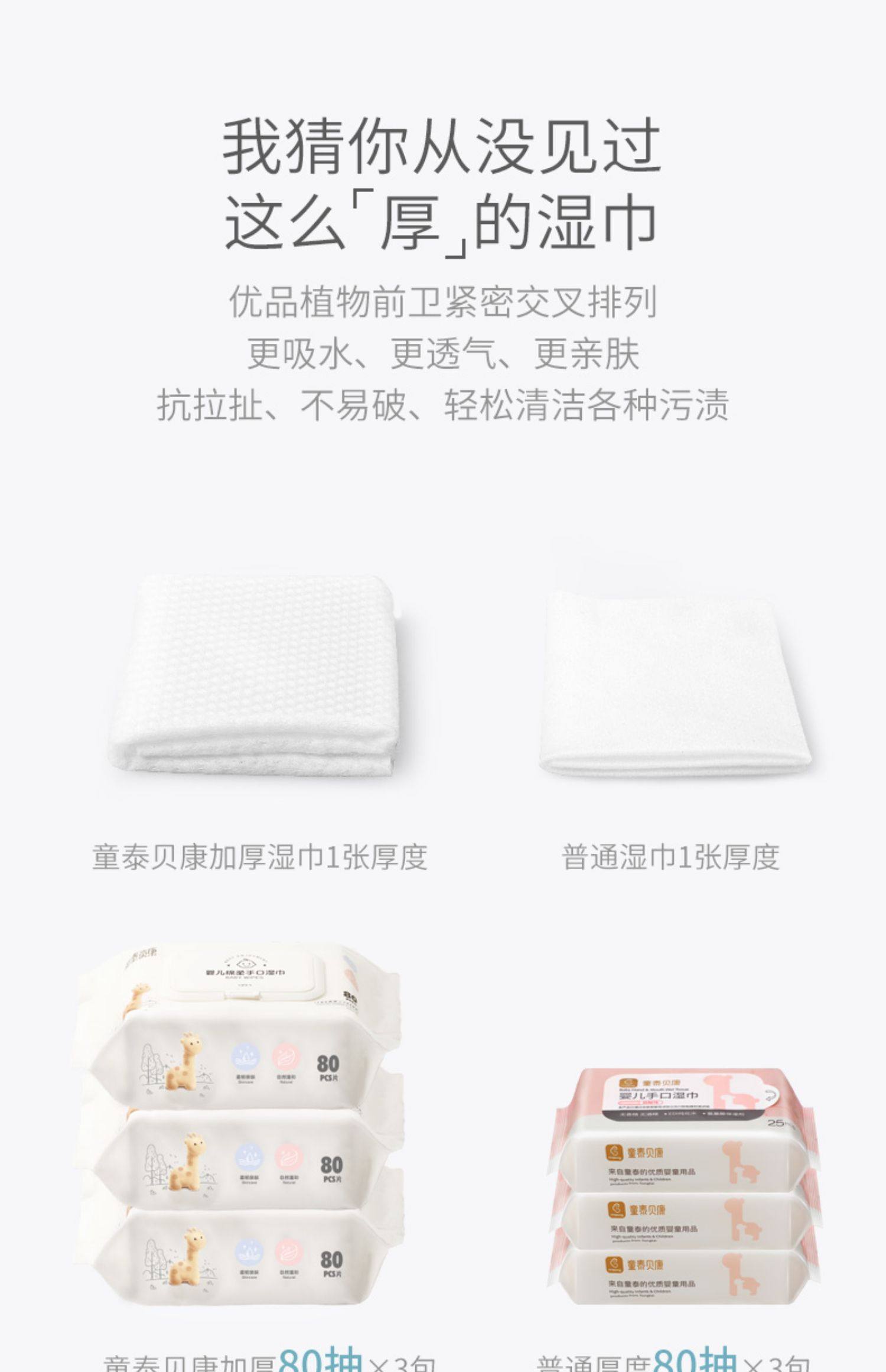 童泰贝康婴儿湿巾手口专用80抽5包装,特惠装宝宝湿纸巾家用,赠运费险