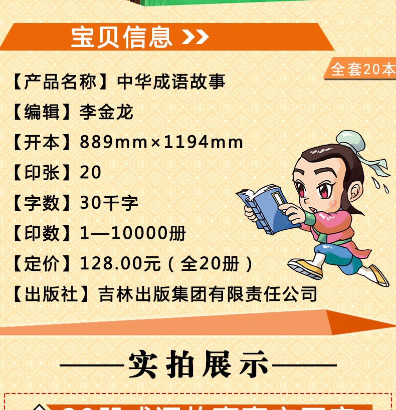 全套20册,每册不到5毛钱!!!彩图注音成语故事,让小学生练就出口成章的能力,一个成语浓缩一段历史,一个故事演绎一种智慧。帮助孩子在不断的阅读积累中提升文学素养,画面精彩丰富!【赠运费险】