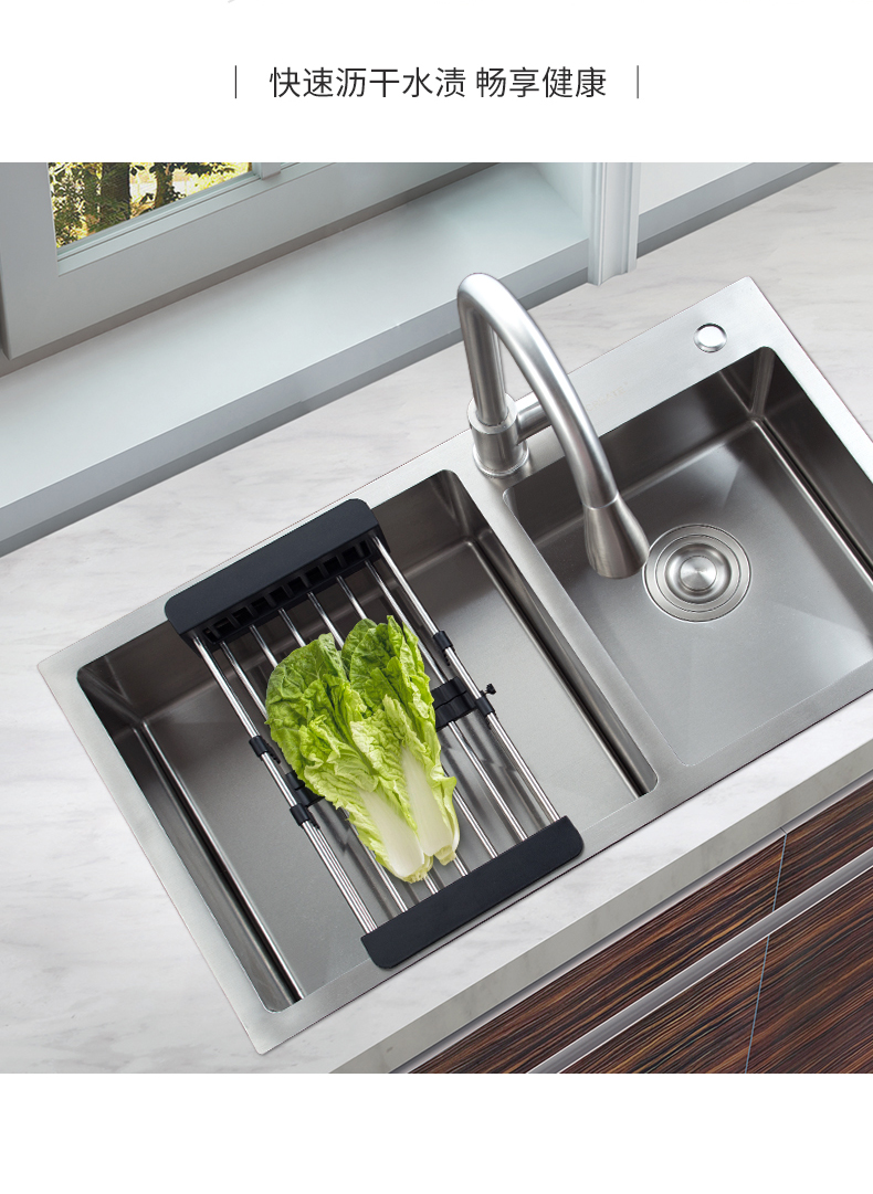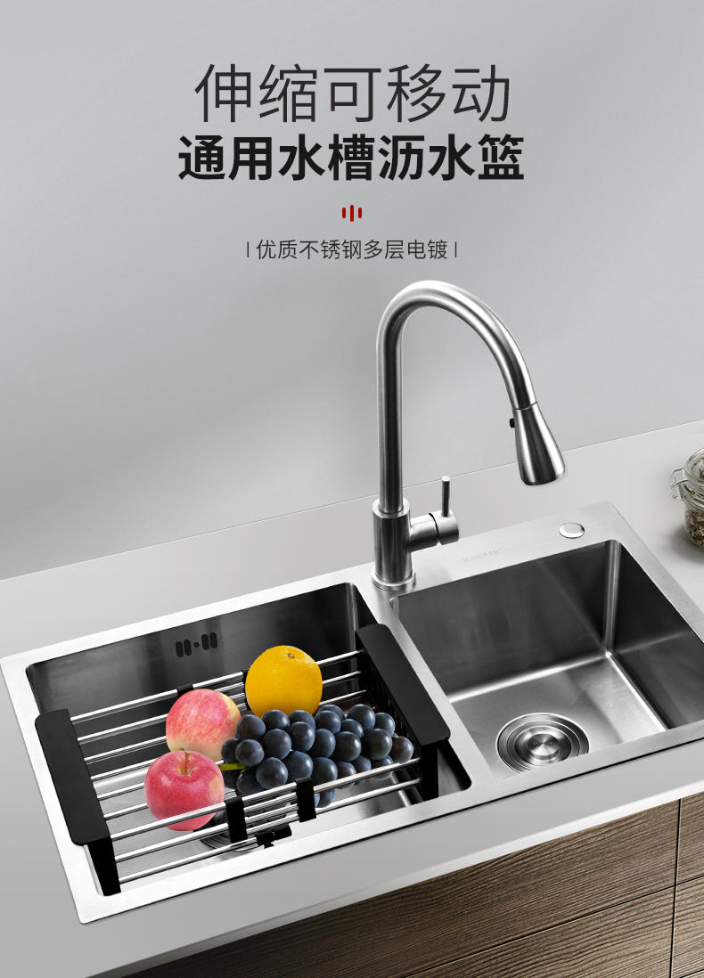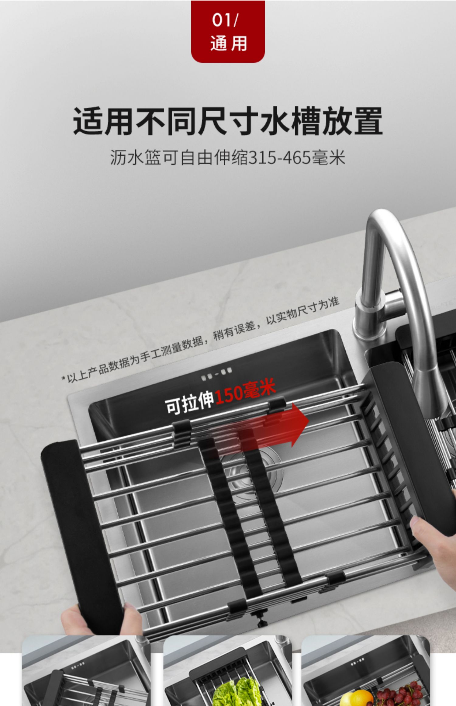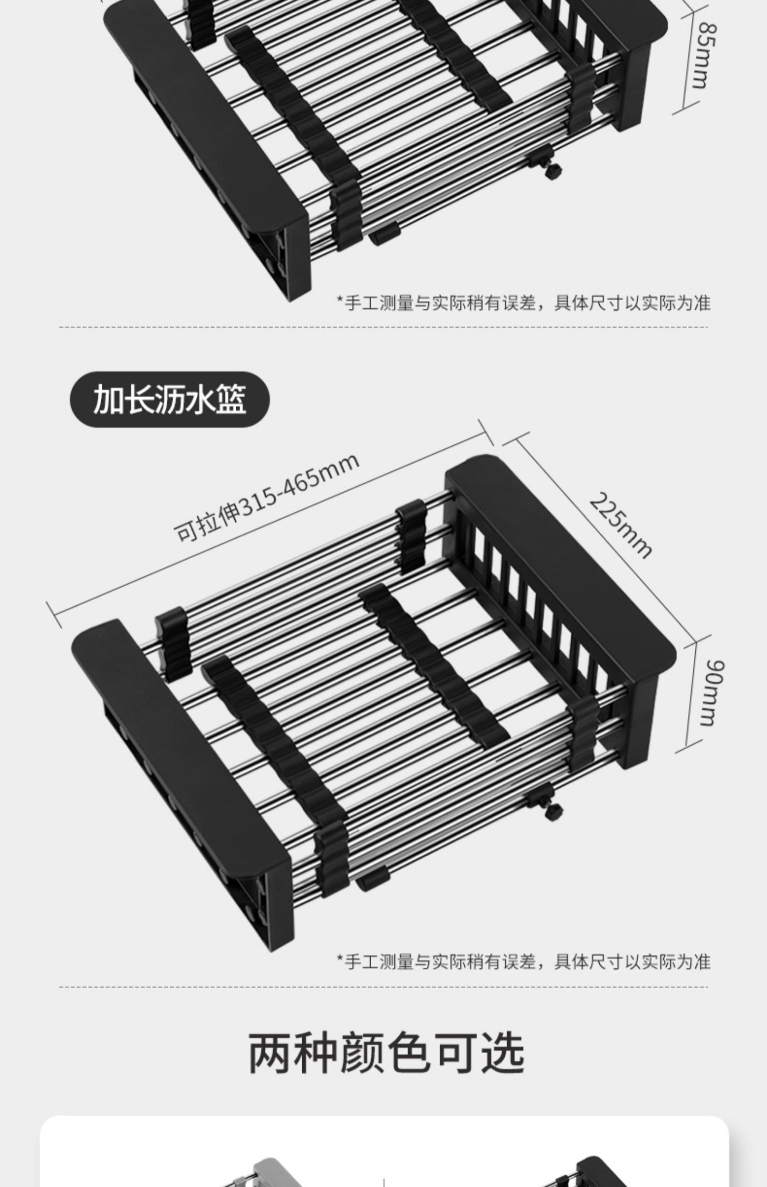 304食品级不锈钢的水槽沥水架,可放盘碗蔬菜,加粗加密可伸缩,坚固耐用不生锈,方便拆装,多种规格可选,适合各种水槽【运费险】
