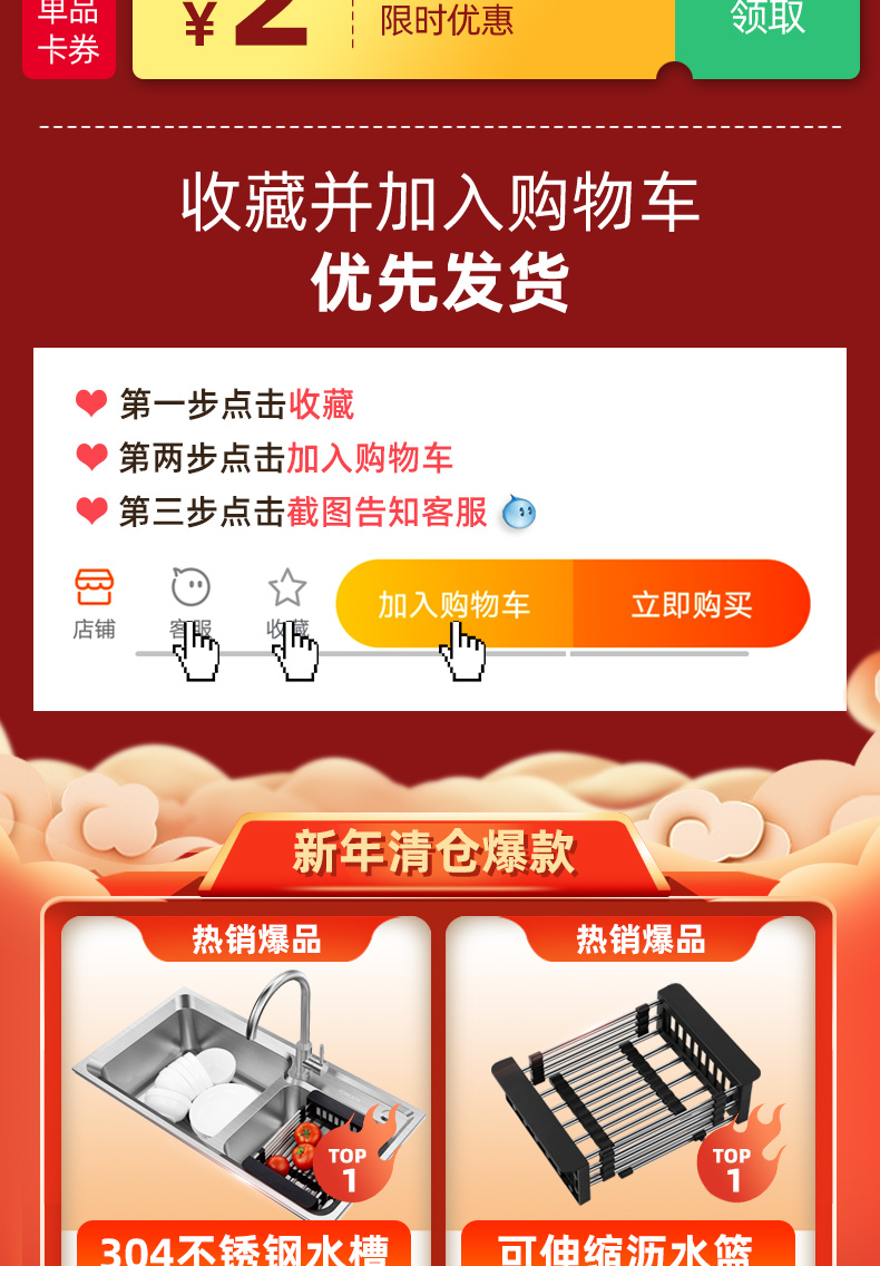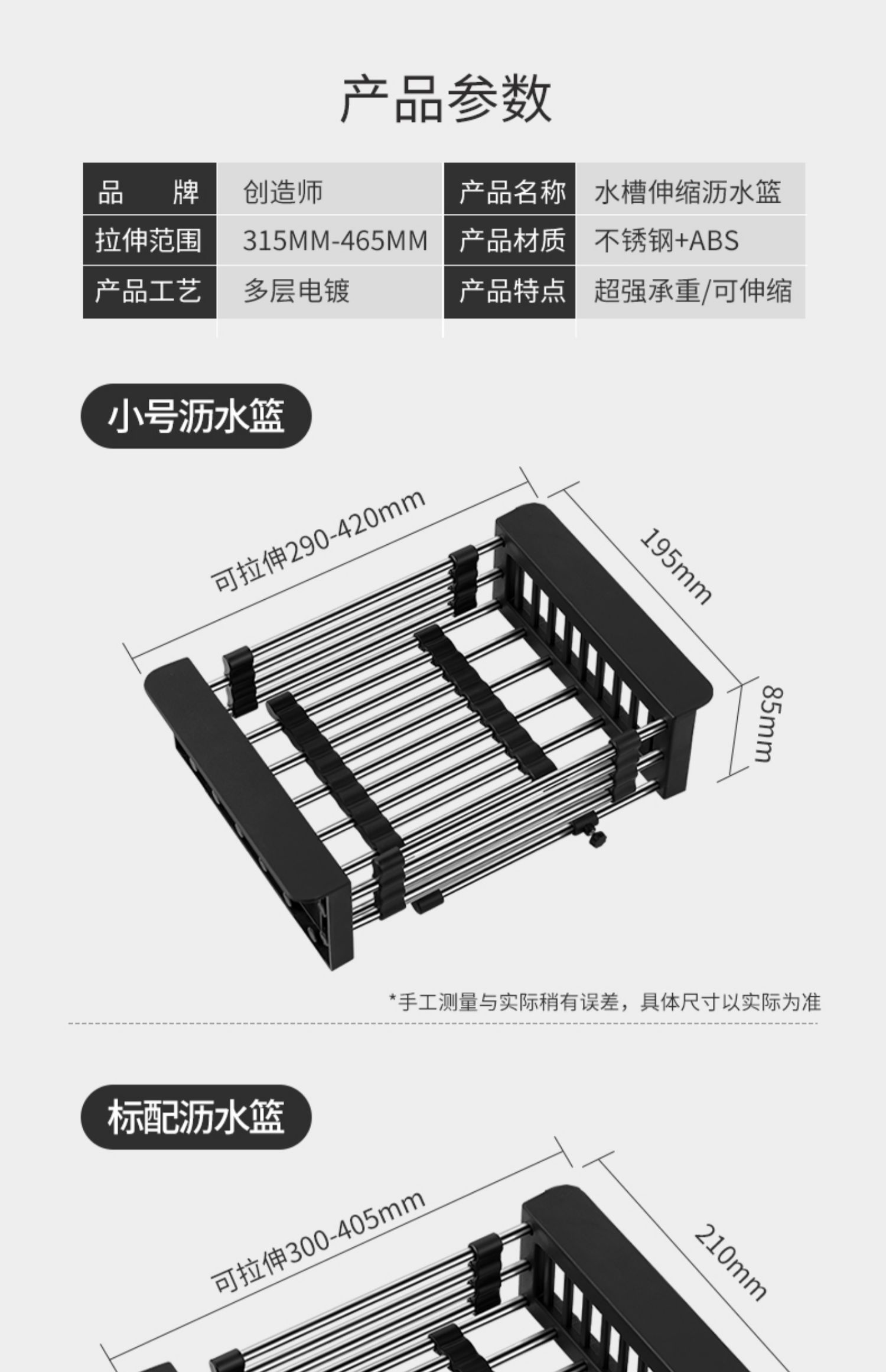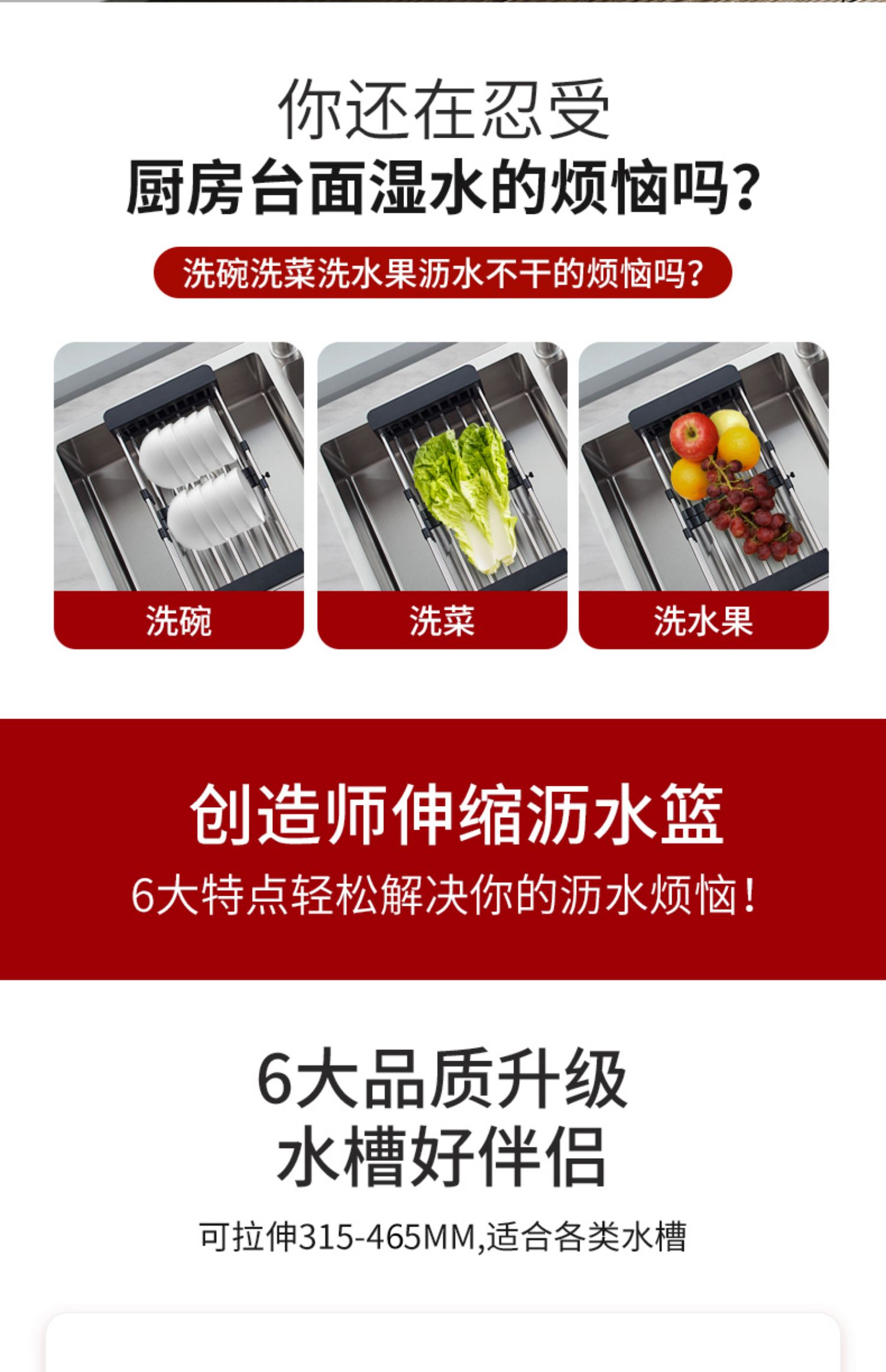 304食品级不锈钢的水槽沥水架,可放盘碗蔬菜,加粗加密可伸缩,坚固耐用不生锈,方便拆装,多种规格可选,适合各种水槽【运费险】
