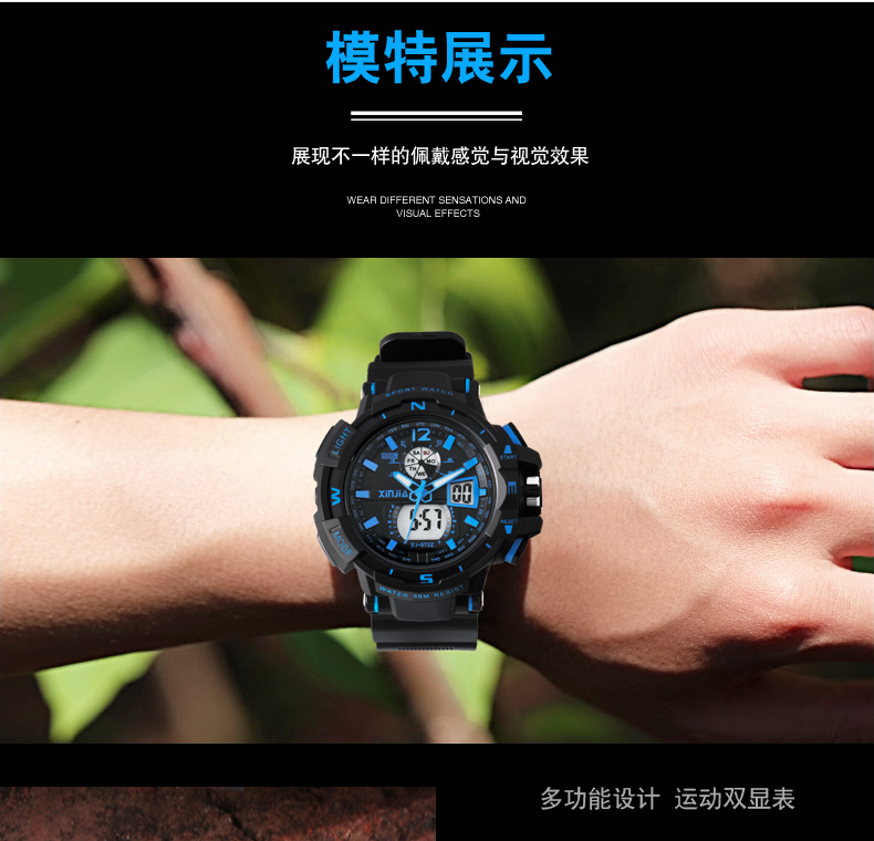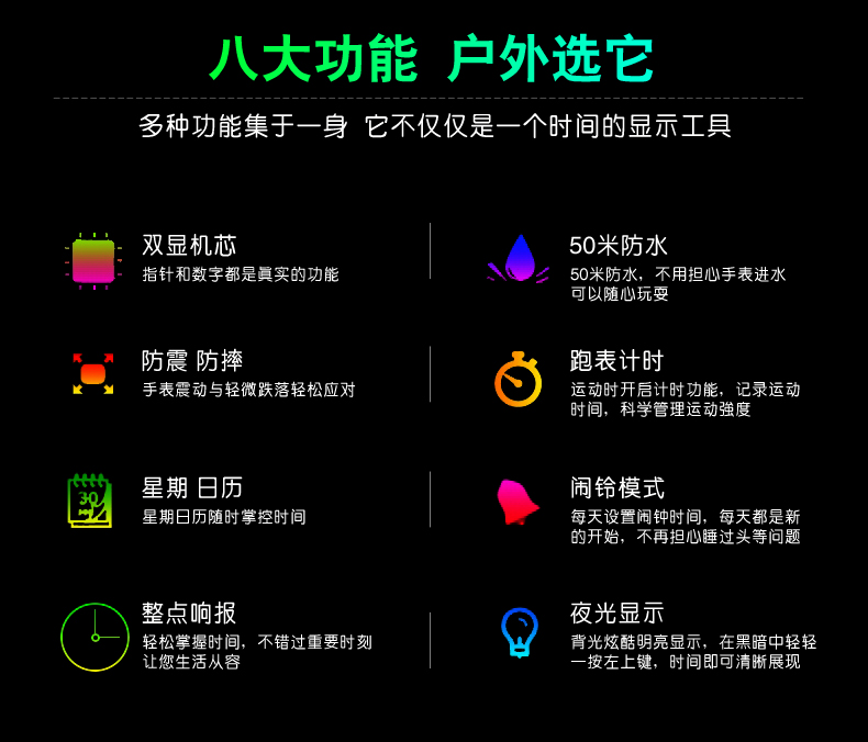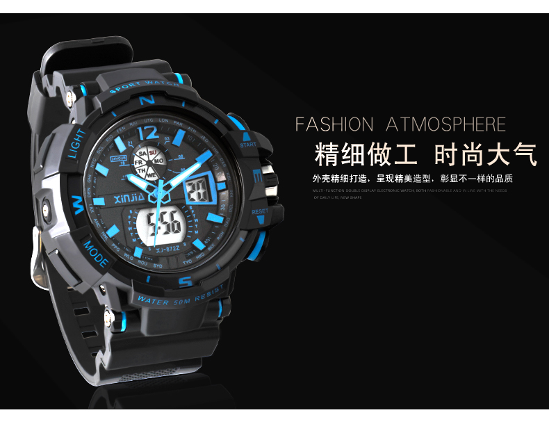 防水多种功能,酷酷小男生的好佩饰,数字式户外多功能男表,抗震耐摔,时尚百搭。