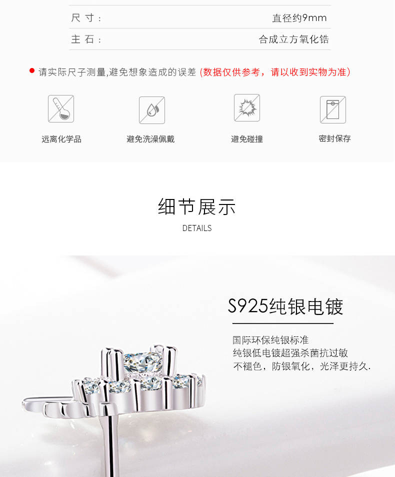 配送精美礼盒、标准S925纯银,电镀白金,德国抛光技术,原创设计,优质仿钻,璀璨夺目,优雅不动神色,却让人心动~