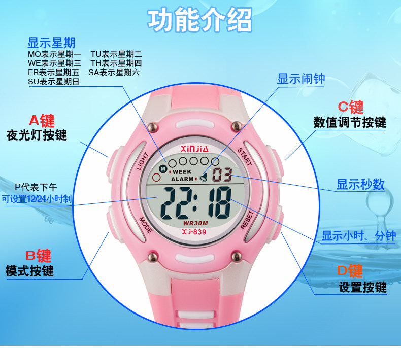 信佳防水夜光儿童电子表