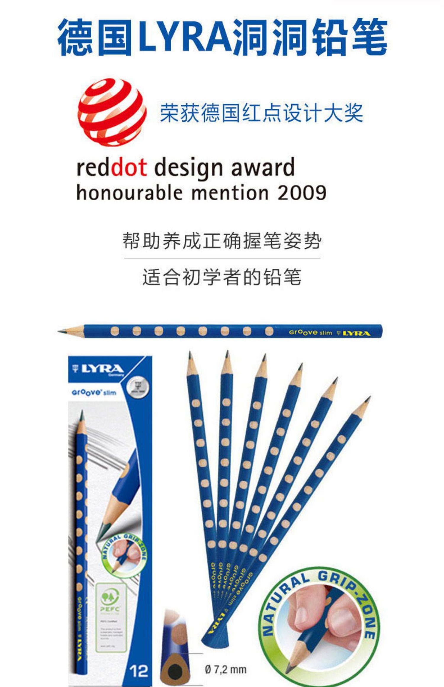 【买就送橡皮擦*1+卷笔刀*1+笔套*6!】【德国LYRA艺雅】洞洞铅笔,安全环保,独特凹洞握笔设计,关注孩子健康书写,矫正孩子写字姿势,防断优质铅芯,左右手均适用。