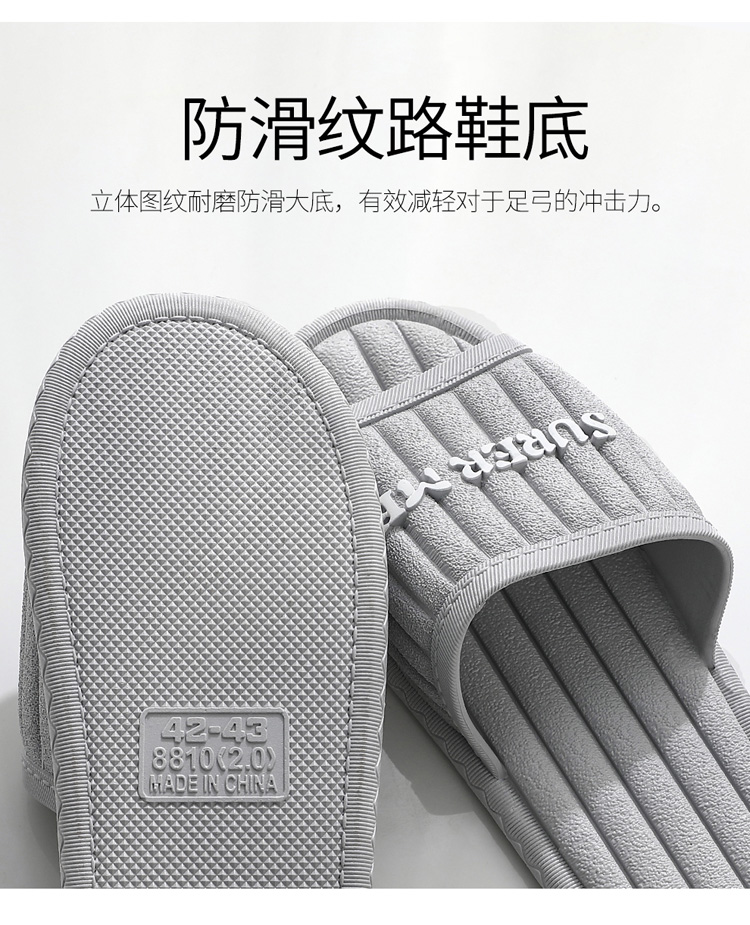人体工学按摩凉拖鞋。与脚掌接触面少,减少汗渍囤积,舒适透气。漏水导流设计,快速干燥,现在促销更实惠。