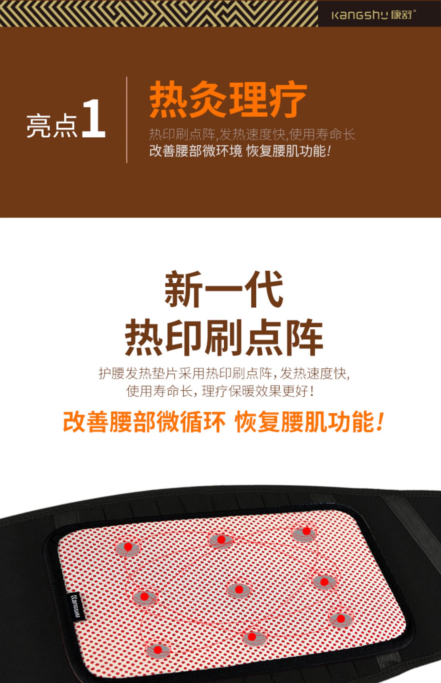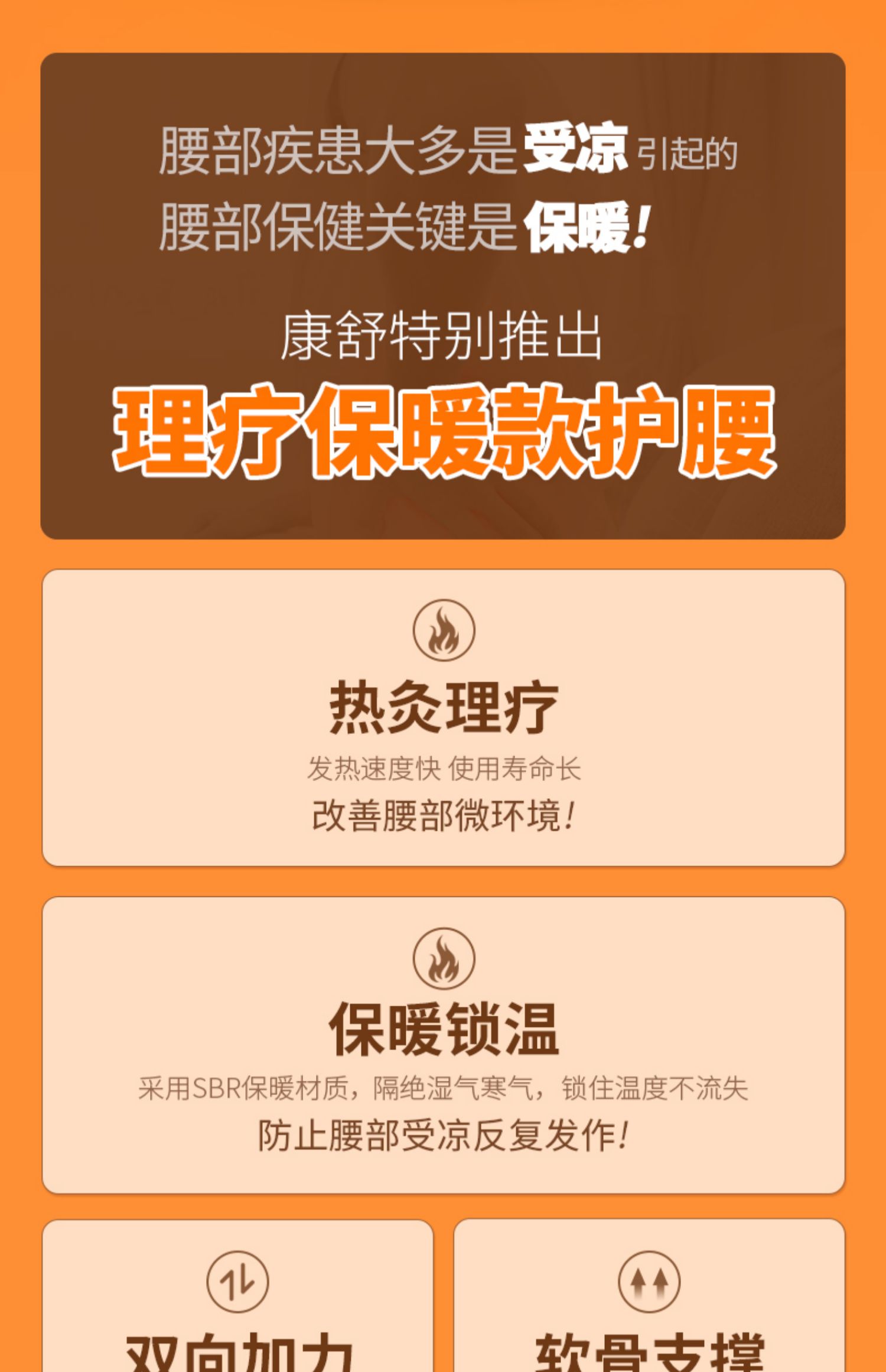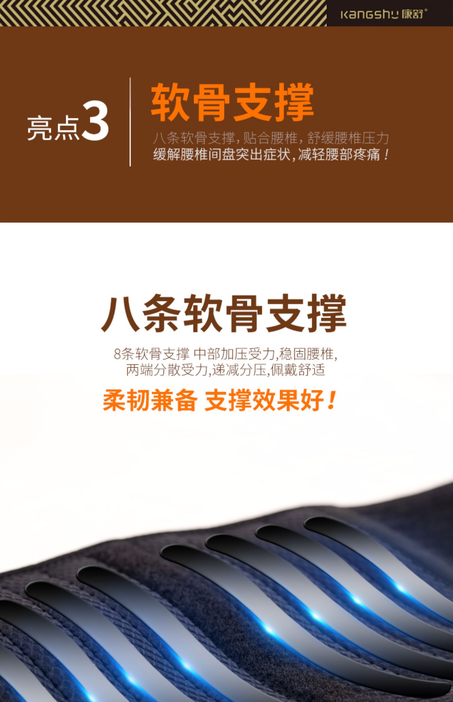 康舒自发热支撑护腰,热印刷点阵发热;内置9颗高能磁石,促进循环,改善腰部微环境,恢复腰肌活力,缓解您的腰部疲劳!【赠运费险】