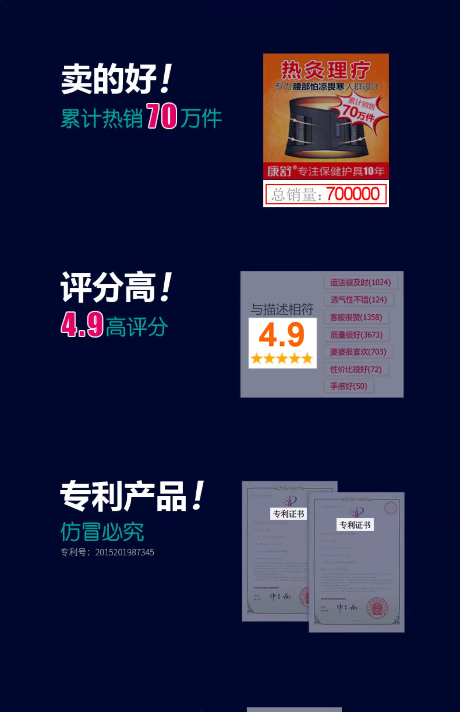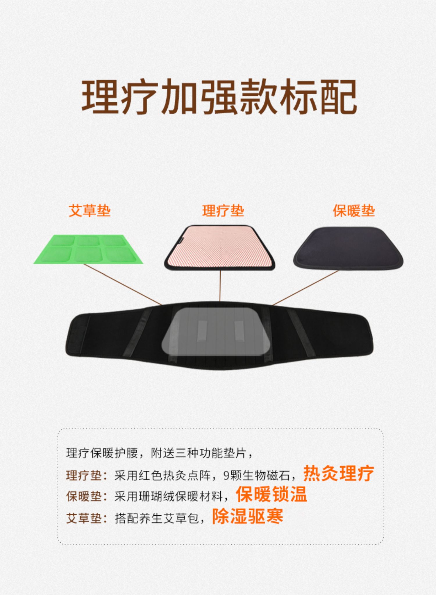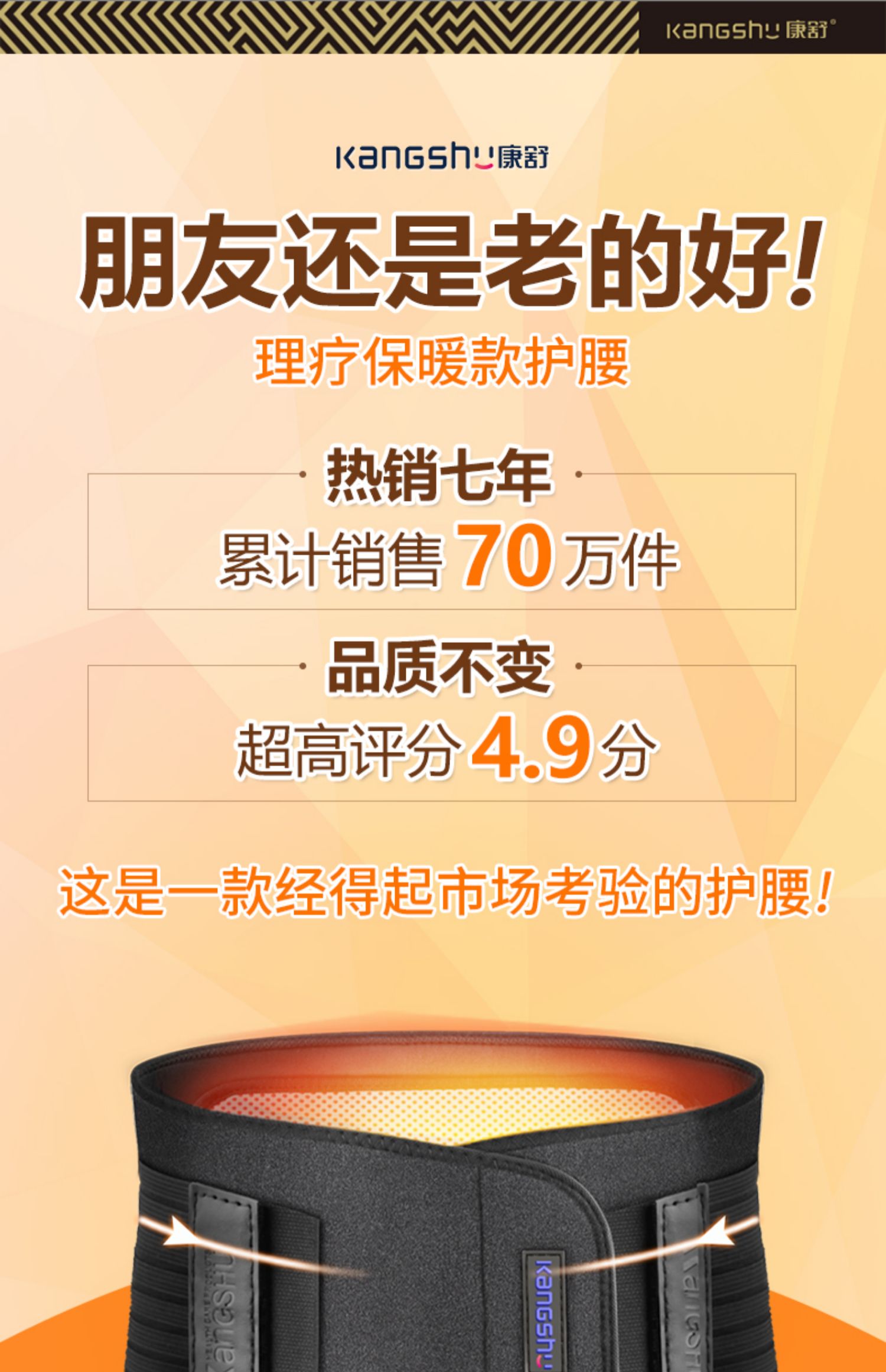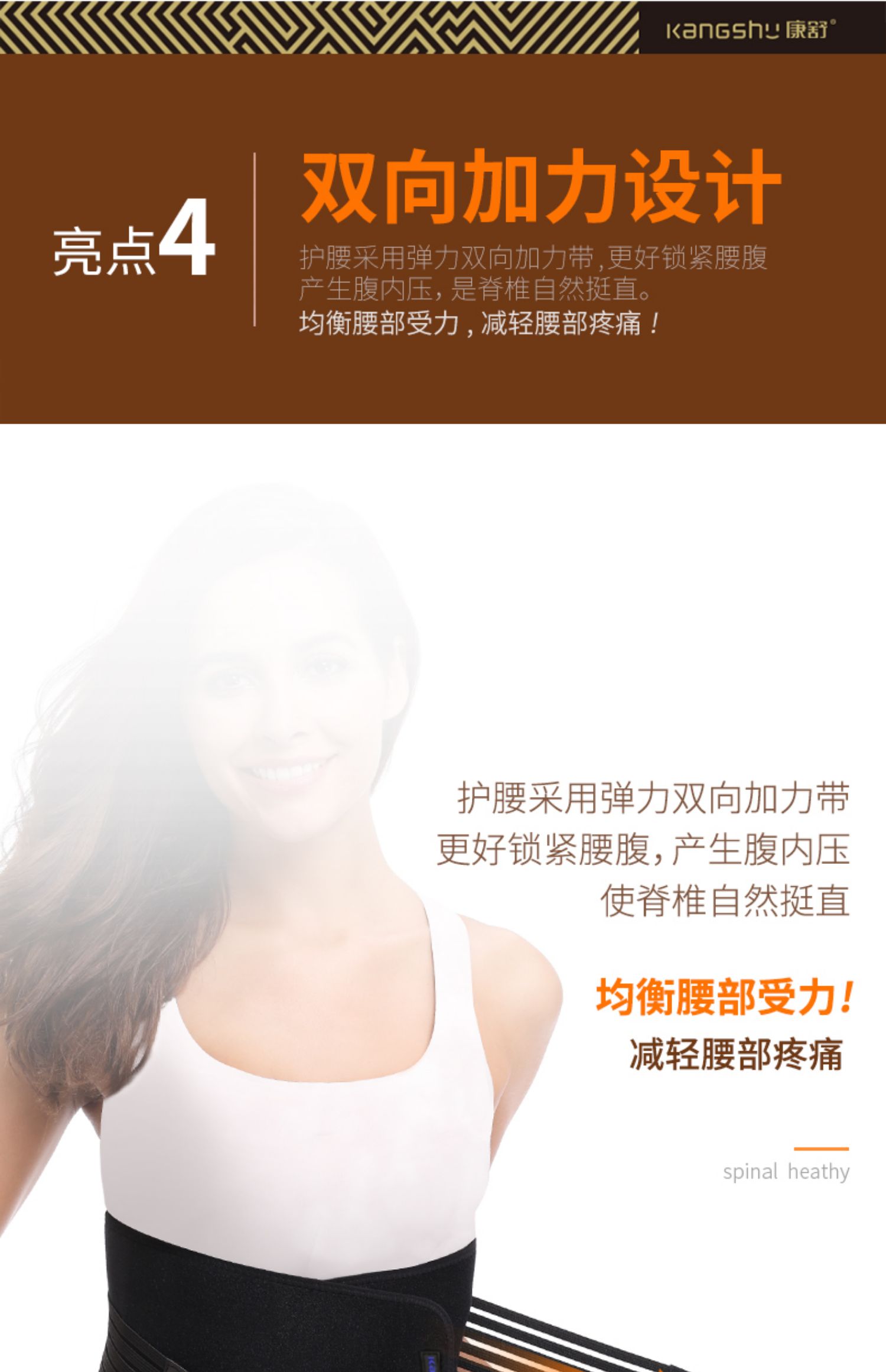 康舒自发热支撑护腰,热印刷点阵发热;内置9颗高能磁石,促进循环,改善腰部微环境,恢复腰肌活力,缓解您的腰部疲劳!【赠运费险】
