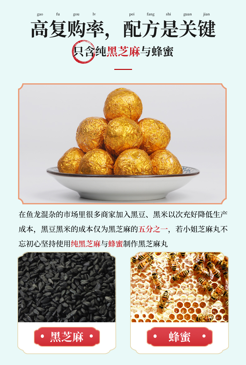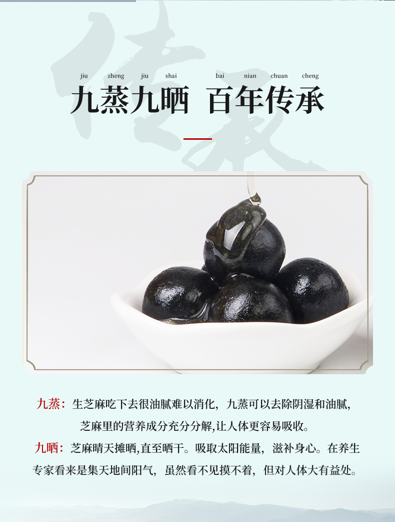 【热销66万】现在火爆的芝麻丸,九蒸九晒,古法传承,手工技艺,天然滋养。黑芝麻为“八谷之冠”,补肝肾,益精,润肠燥,素食工作者、白发人群、脑力工作者都适合!