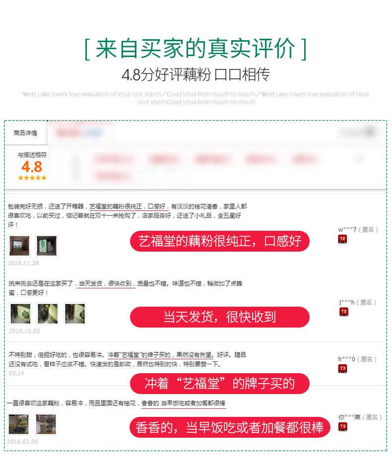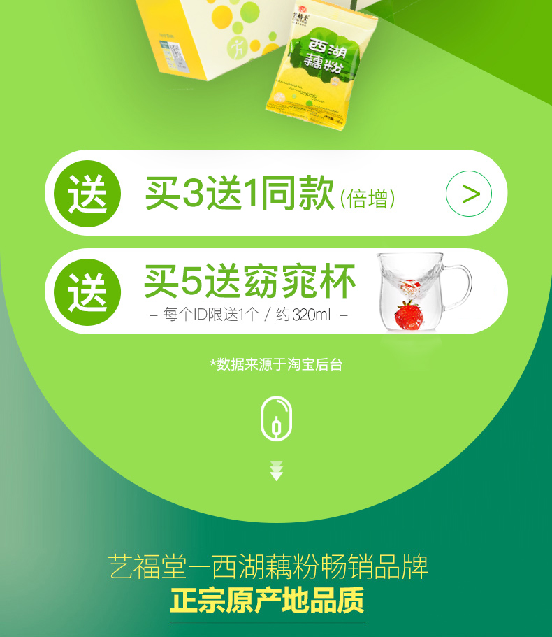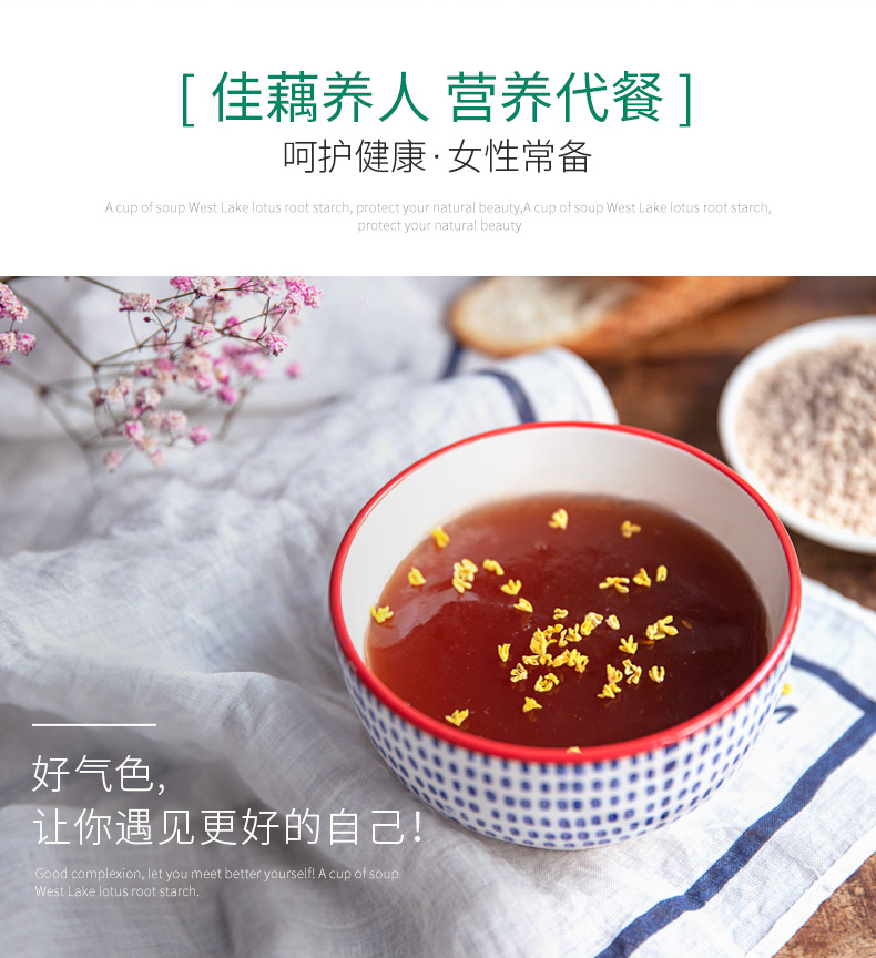 艺福堂西湖藕粉品牌优质,润肺暖胃,营养早餐,清新胃健康,老少皆宜,美好的早晨,从藕粉开始,就是小时候的味道!就是记忆中的甘甜,值得拥有!【赠运费险】