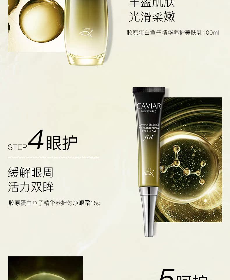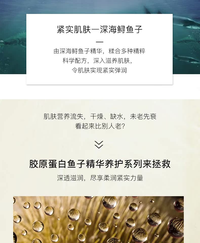 守护年轻~紧实呵护,补水沁润。还在为松弛,粗糙,干纹,刷屏,熬夜,加班烦恼。胶原蛋白鱼子精华养护系列来拯救你了,美白补水效果明显哦!~【赠运费险】