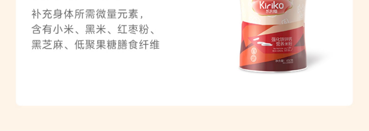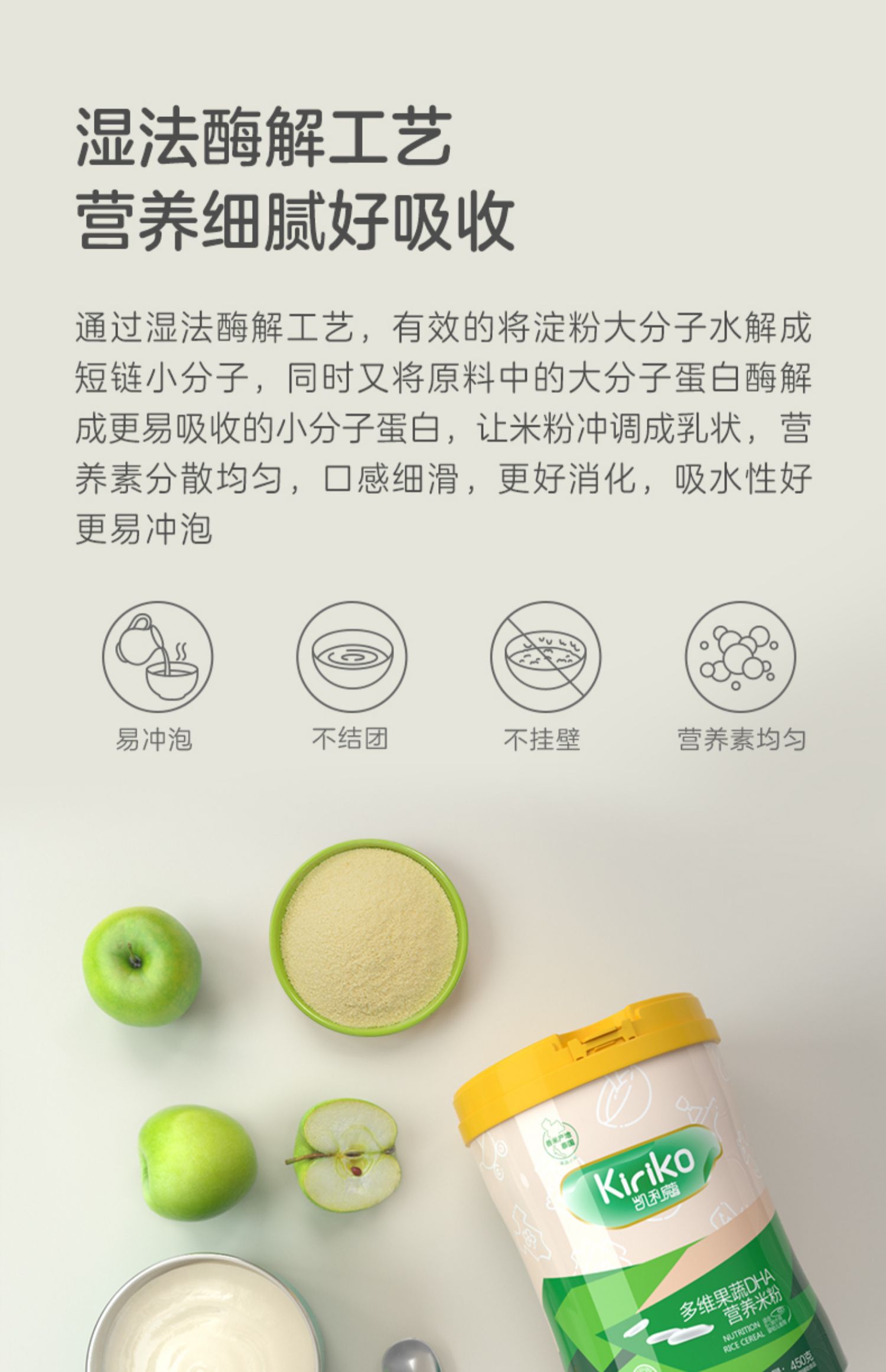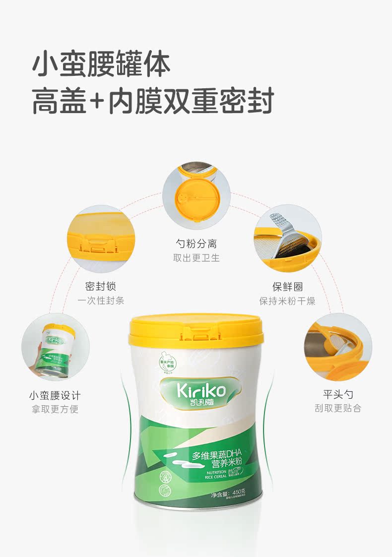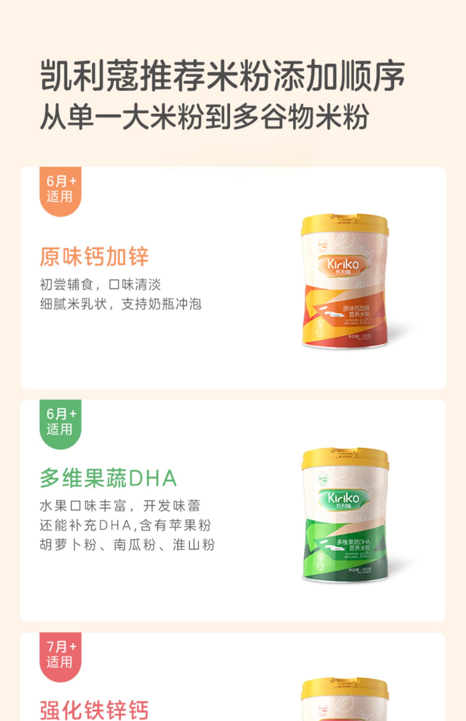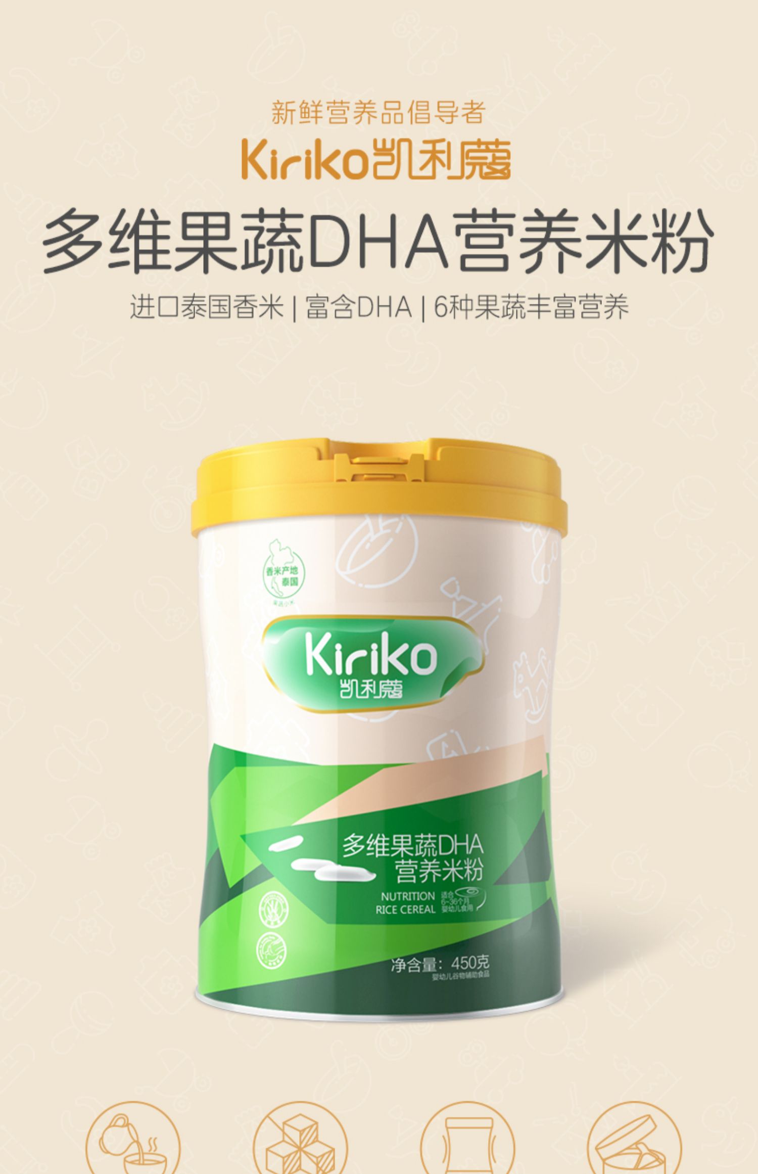 进口德国Kiriko婴幼儿米糊,泰国香米+6种果蔬丰富营养易冲泡,双重密封,富含DHA助力宝宝大脑发育,湿法酶解工艺营养好吸收,妈妈放心选择。