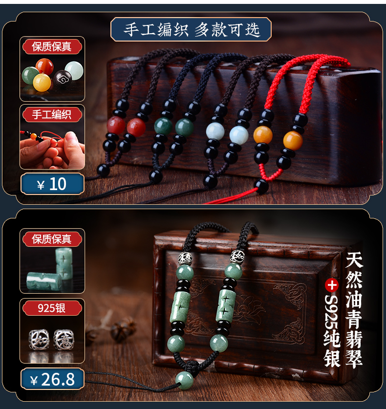 精编手工编织挂绳,买二送一(同价位挂绳)进口玉线,承重更强,不惧泡水,多色多款可选,美女们,赶紧抢购吧,所用配珠均用正品,支持权威机构鉴定。