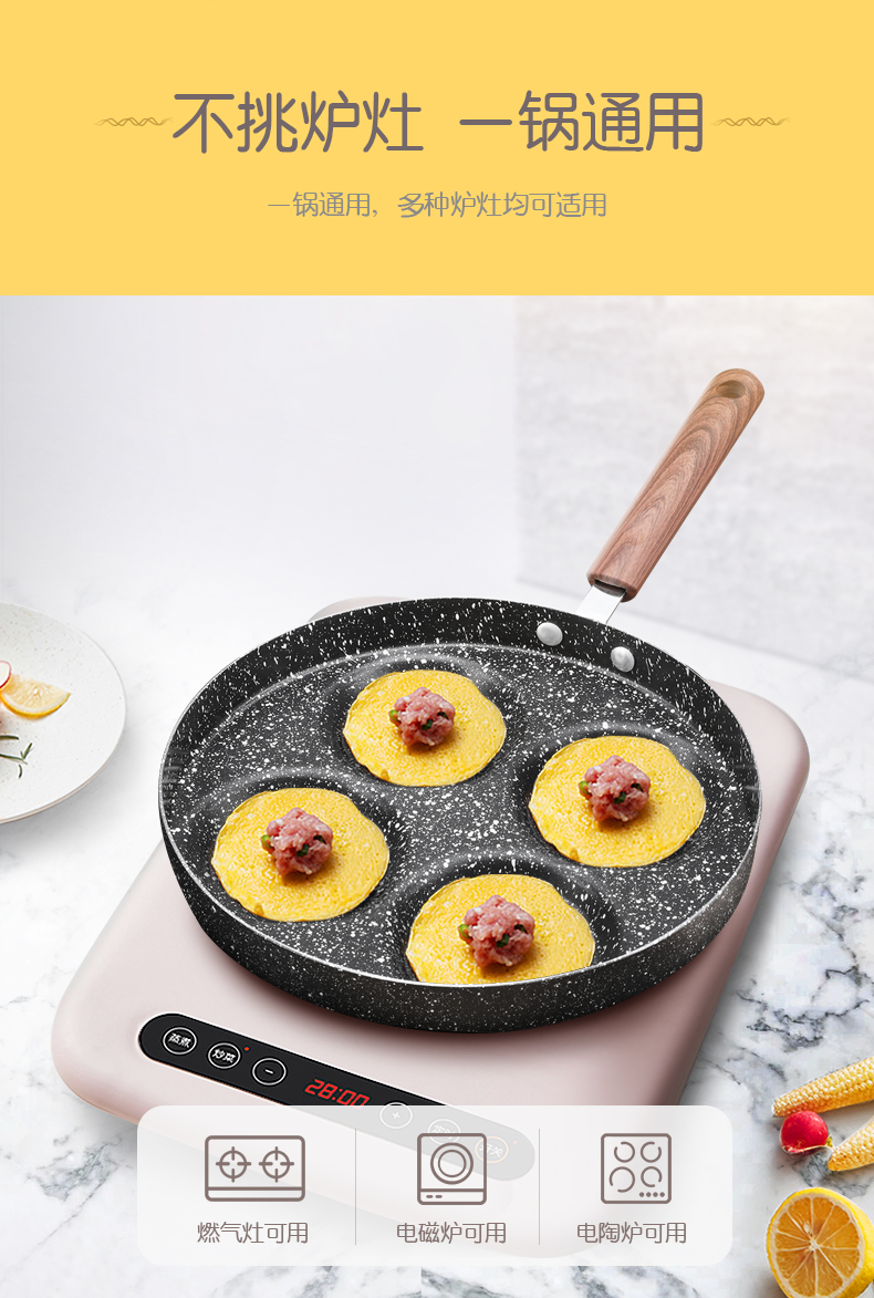 【顺丰包邮】家用鸡蛋汉堡煎锅,优质麦饭石,不焦糊不粘锅底,一次煎4个,一锅可享多种美味,生活再忙也别忘了好好吃饭。【赠运费险】