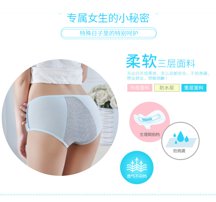 精选天然棉花,高腰暖宫,经期防漏生理内裤,柔软舒适,透气易清洗,三层防漏面料,腰部不紧绷,无勒痕,经期专属设计,安全一整夜,给你更安心的保护!让您经期不再烦恼!!!【赠运费险】