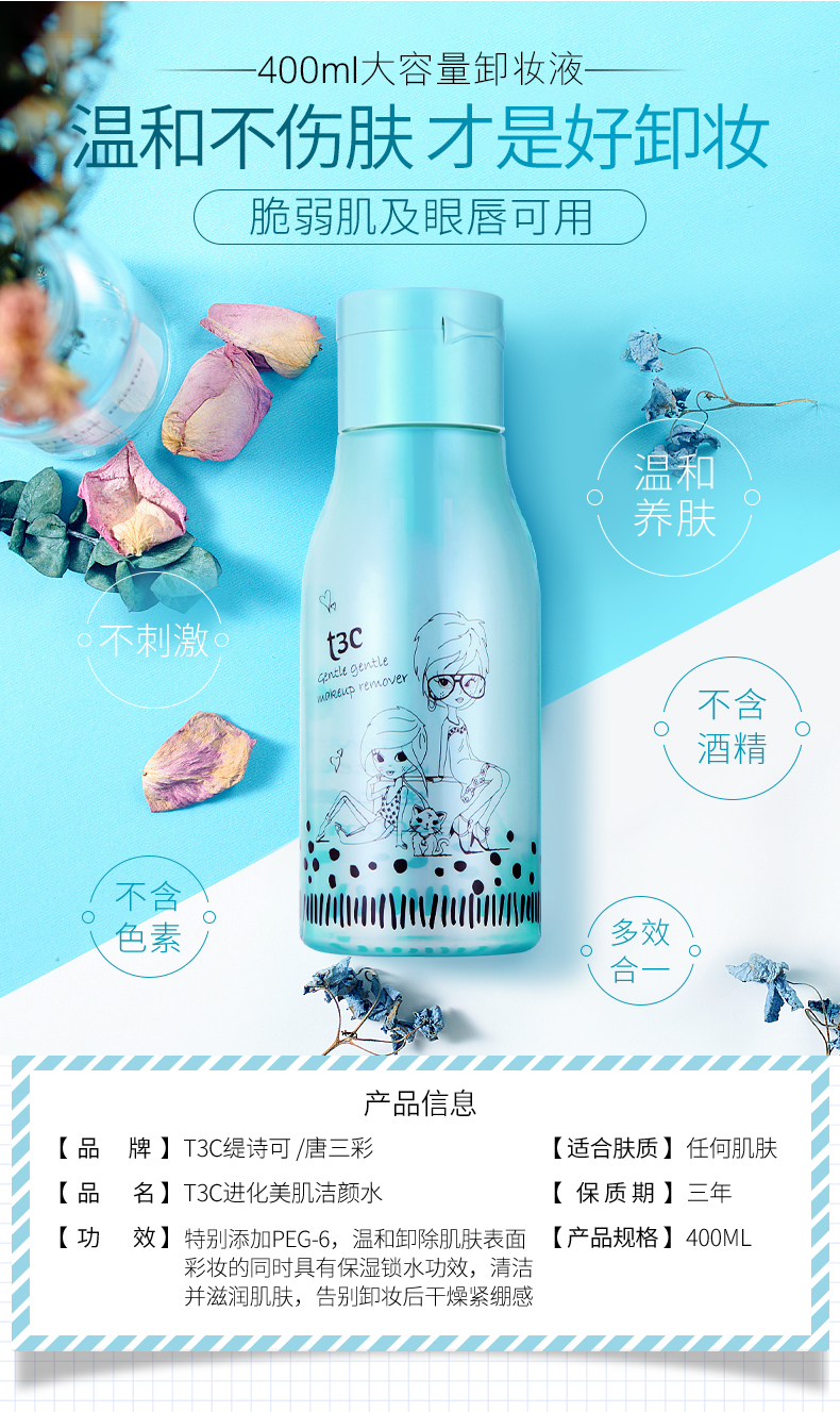 无酒精,温和清洁卸妆!保湿滋润不紧绷,肌肤水嫩光泽!【赠运费险】