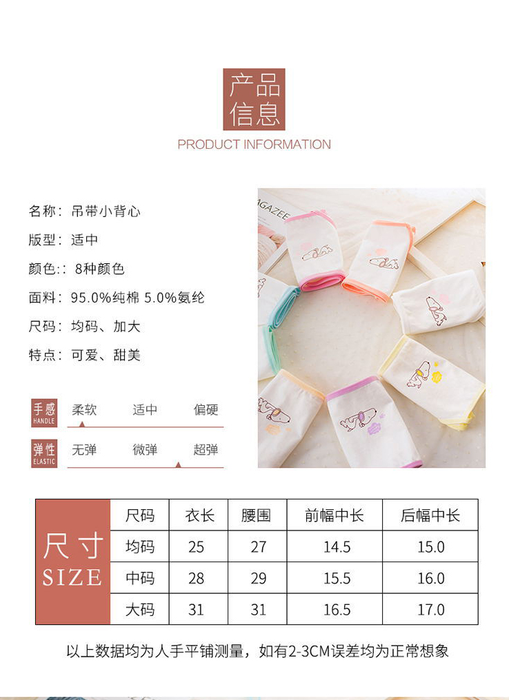 纯棉女童发育期内衣,背心式设计,天然材料,纯棉面料,光滑细腻,透气舒适,可爱甜美卡通,让宝宝的童年充满幸福,健康成长,孩子的开心就是妈妈的放心!【赠运费险】