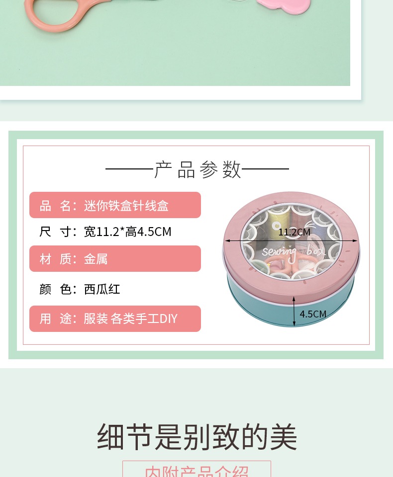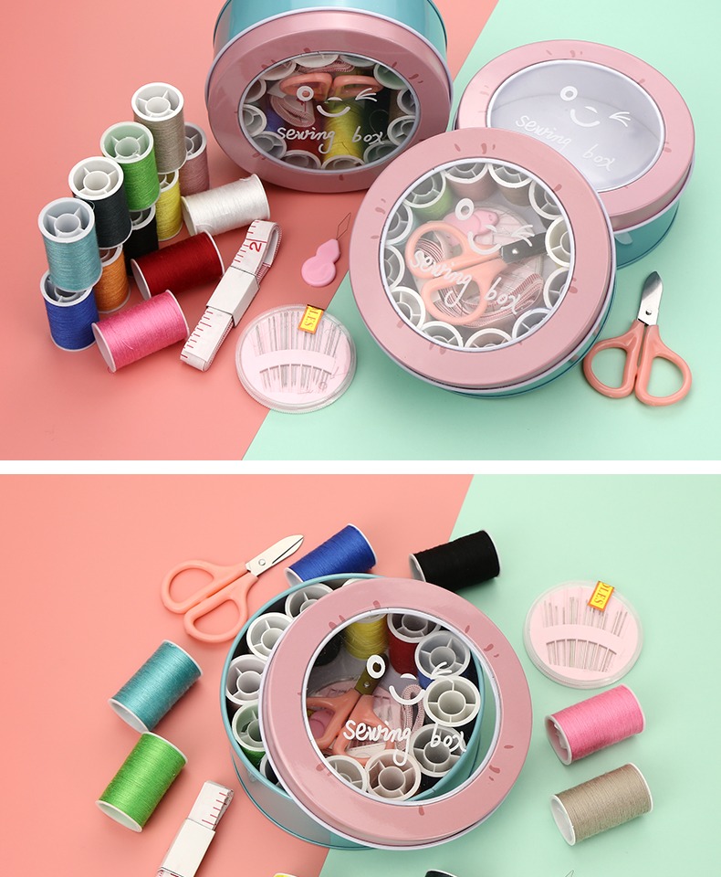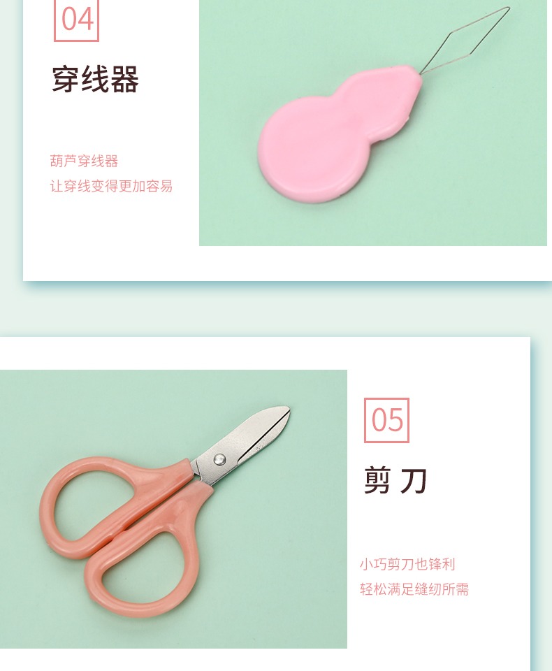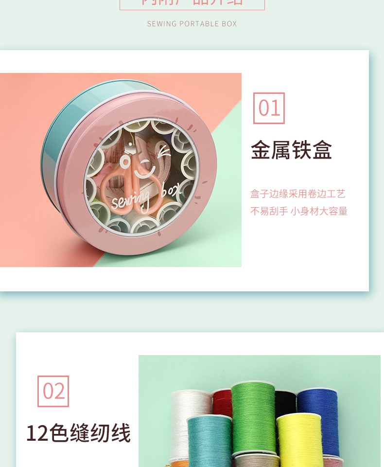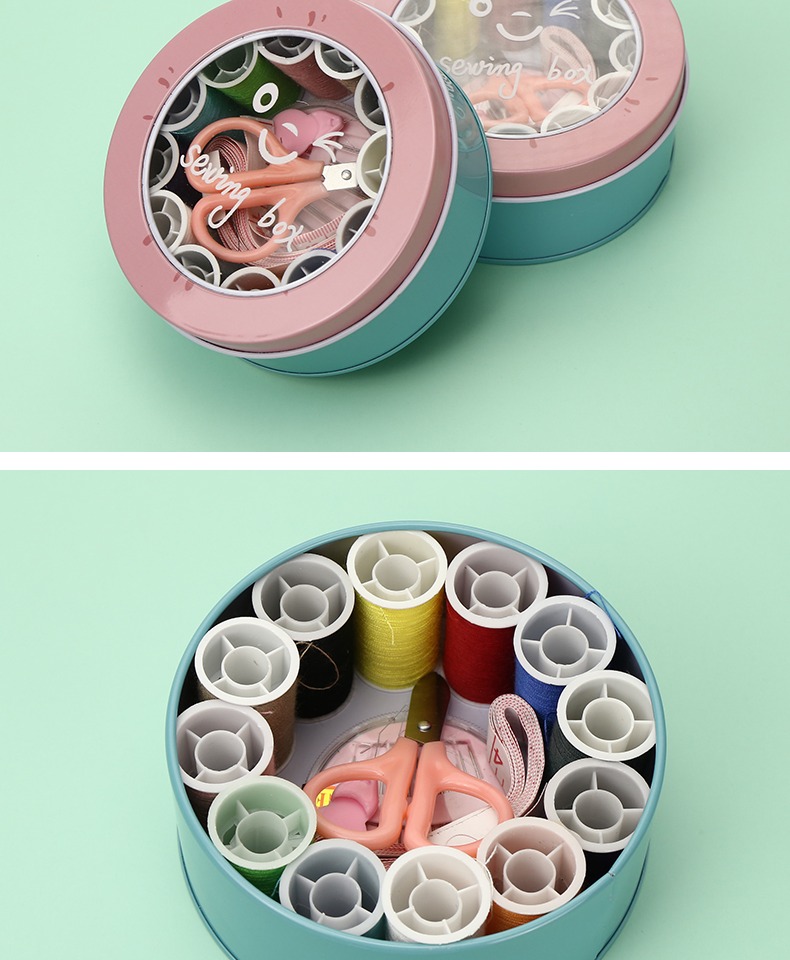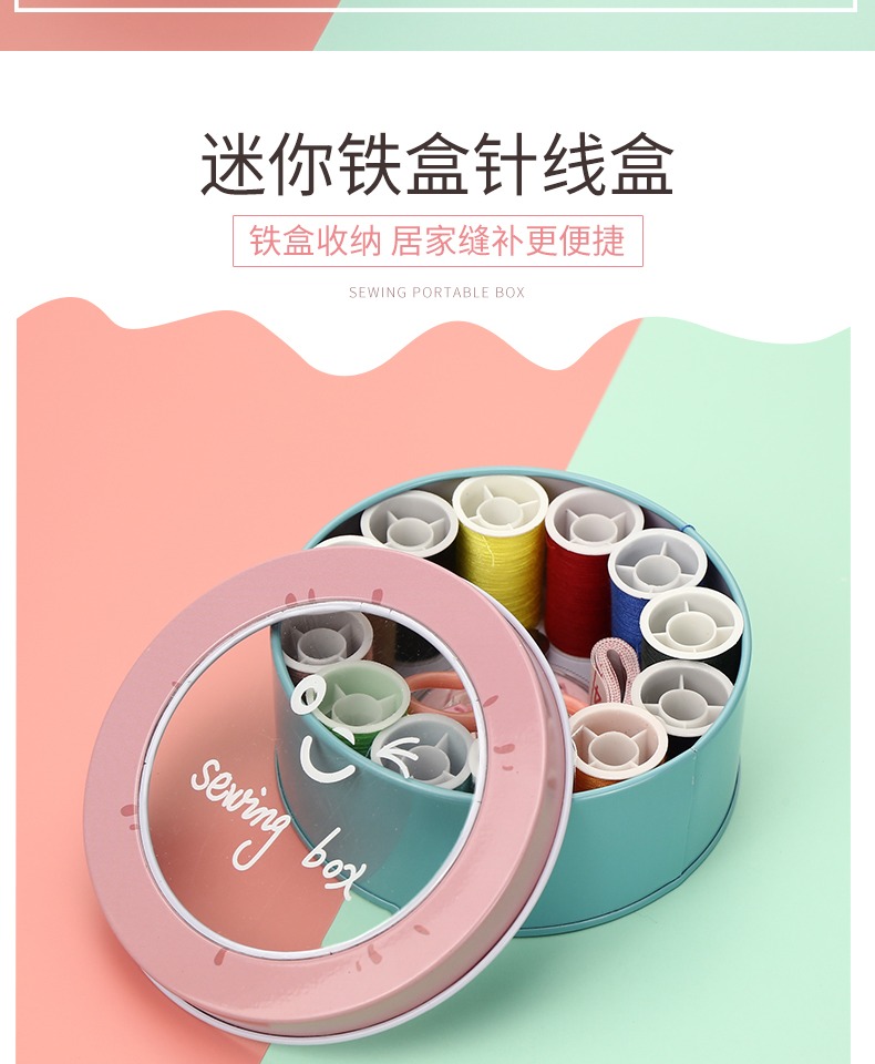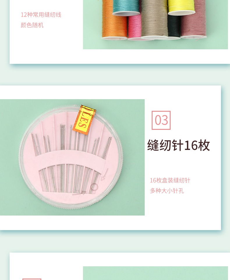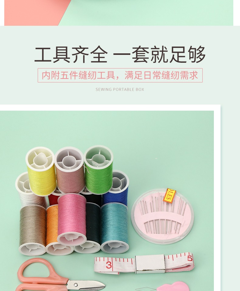 居家必备针线盒,可爱收纳盒包装,内含皮尺,小剪刀,穿针线,12色线,16枚手缝针。持久耐用,是您居家必不可少的好帮手。