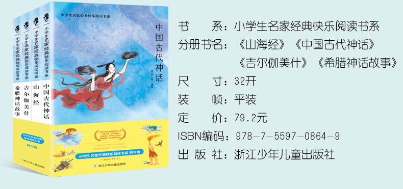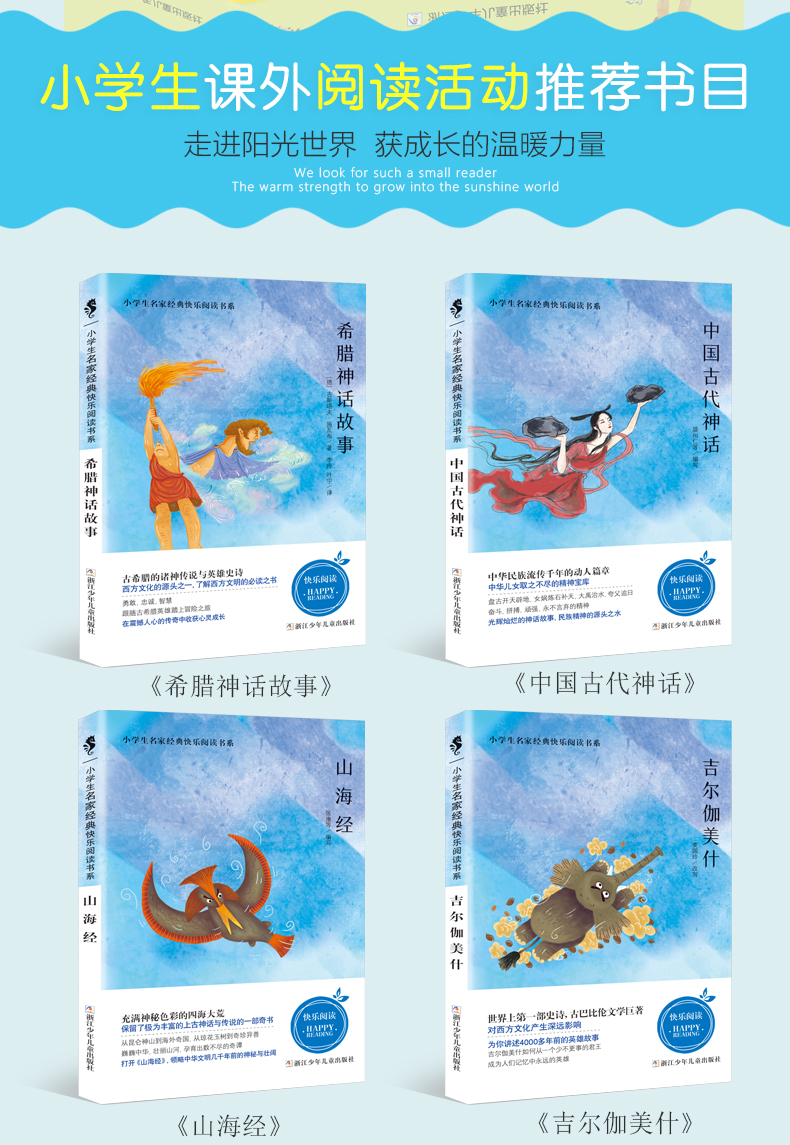 【正版全套4册】,小学生必读中国古代神话故事+希腊神话故事+山海经+吉尔伽美什,大字大开本,高清印刷,宝妈必备宝宝睡前故事书,小学课外阅读国学启蒙认知必读丛书。