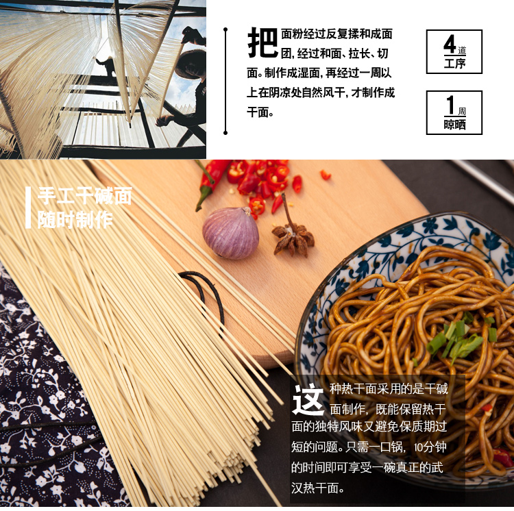 湖北武汉热干面,12份独立装,含调料,口感劲道,粗细适中,四道工序,精心制作,经济实惠,回味无穷,让你享受一碗武汉正宗热干面!