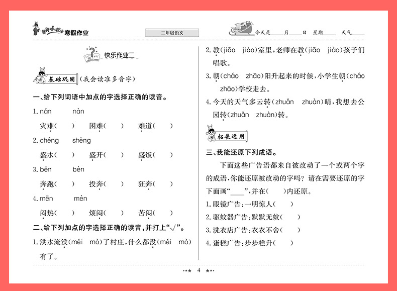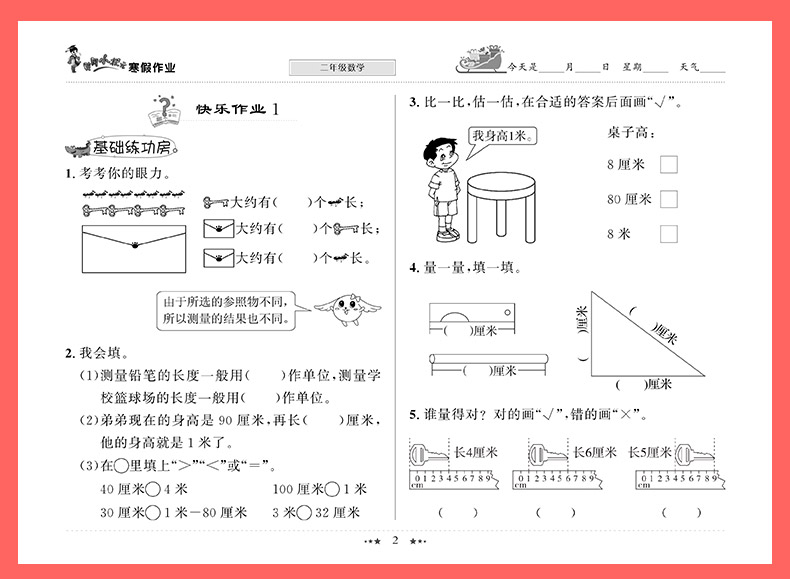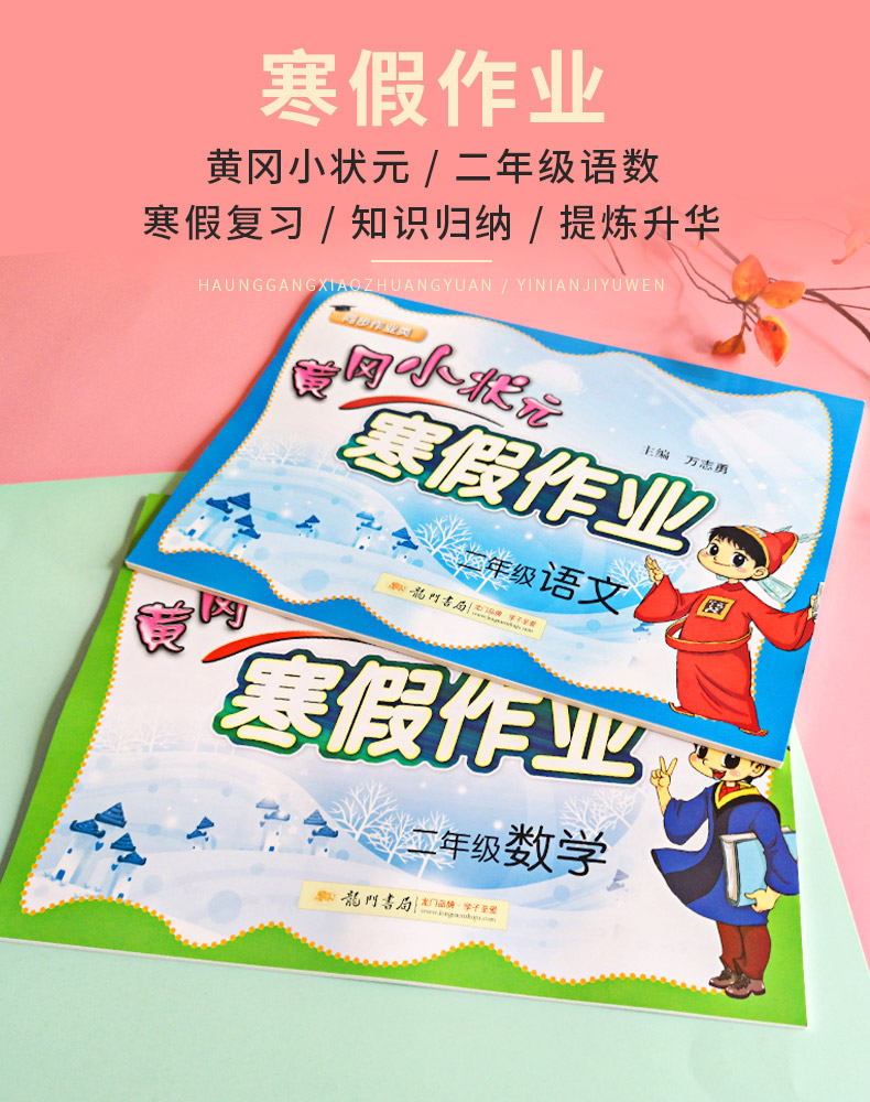 2本全 黄冈小状元二年级寒假作业语数