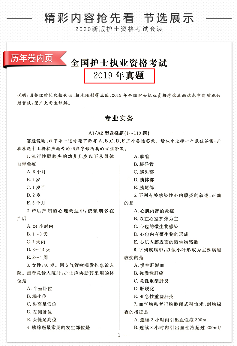 【报名冲刺】2020年护士资格证考试试题,五套历年真题+全新六套押题,含2019年真题,连续三年高命中率,零基础84小时掌握考试原题,一套全搞定!【赠送视频题库+宝典攻略】