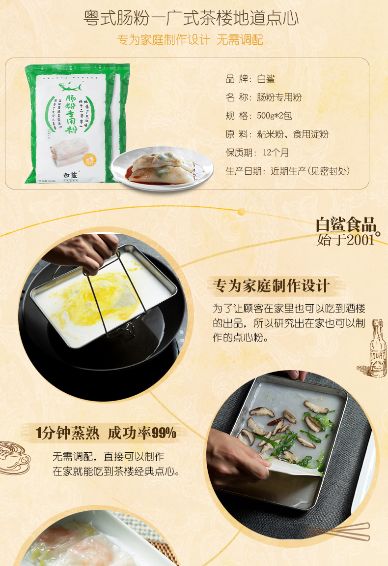 肠粉500g*2,吃货福利,让你在家也能吃到香喷喷的肠粉!!!石磨磨成的粉,特别细腻,软滑爽嫩,跟果冻一样Q弹,快抢!!