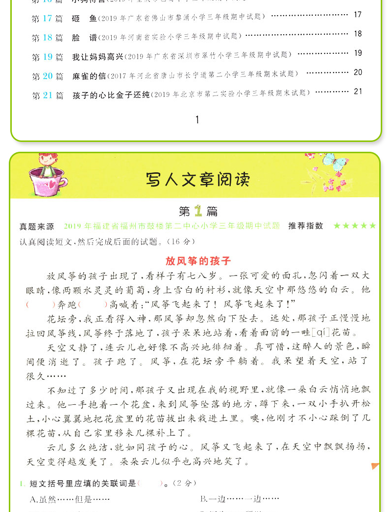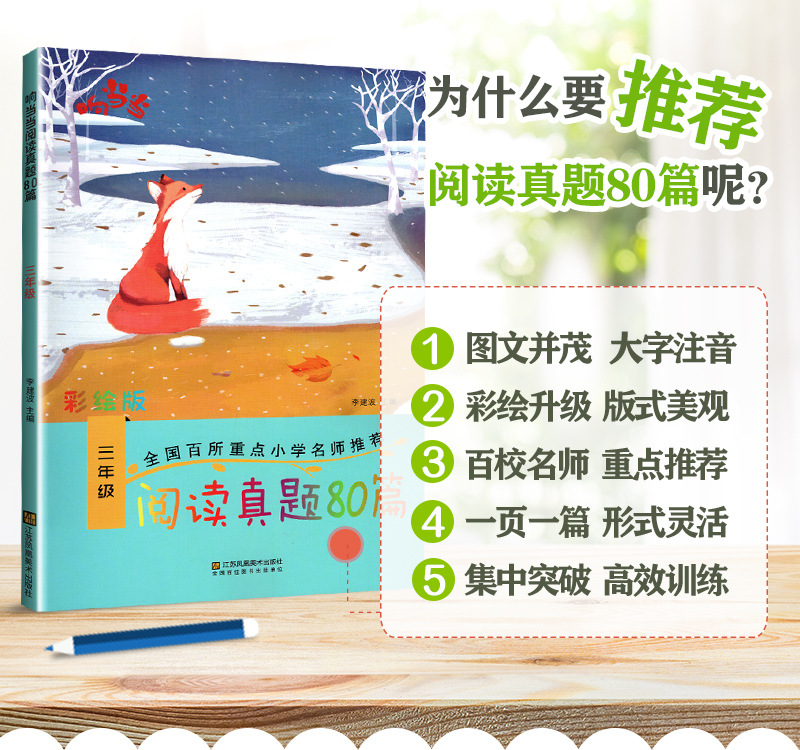 绘版阅读真题80篇三年级学生课外阅读书籍,小学三年级语文阅读理解训练题人教版通用版,适合三年级小学生阅读的课外书响当当,正版保证。