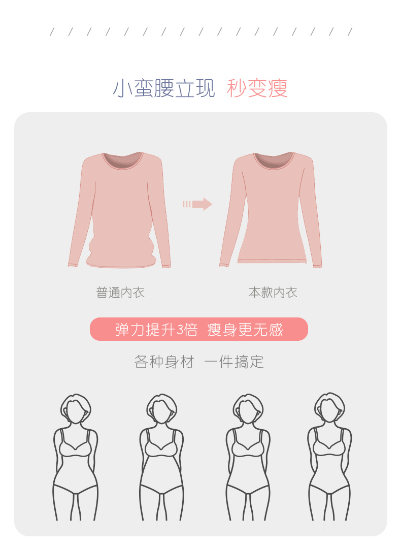 正品保暖,线下专柜同款,精选优质面料,柔软舒适,透气亲肤,做工细致~不起球不褪色,新升级保暖面料,时尚修身不臃肿,高颜值的女保暖内衣