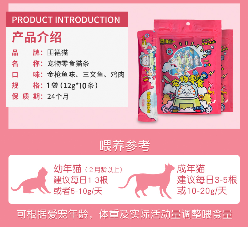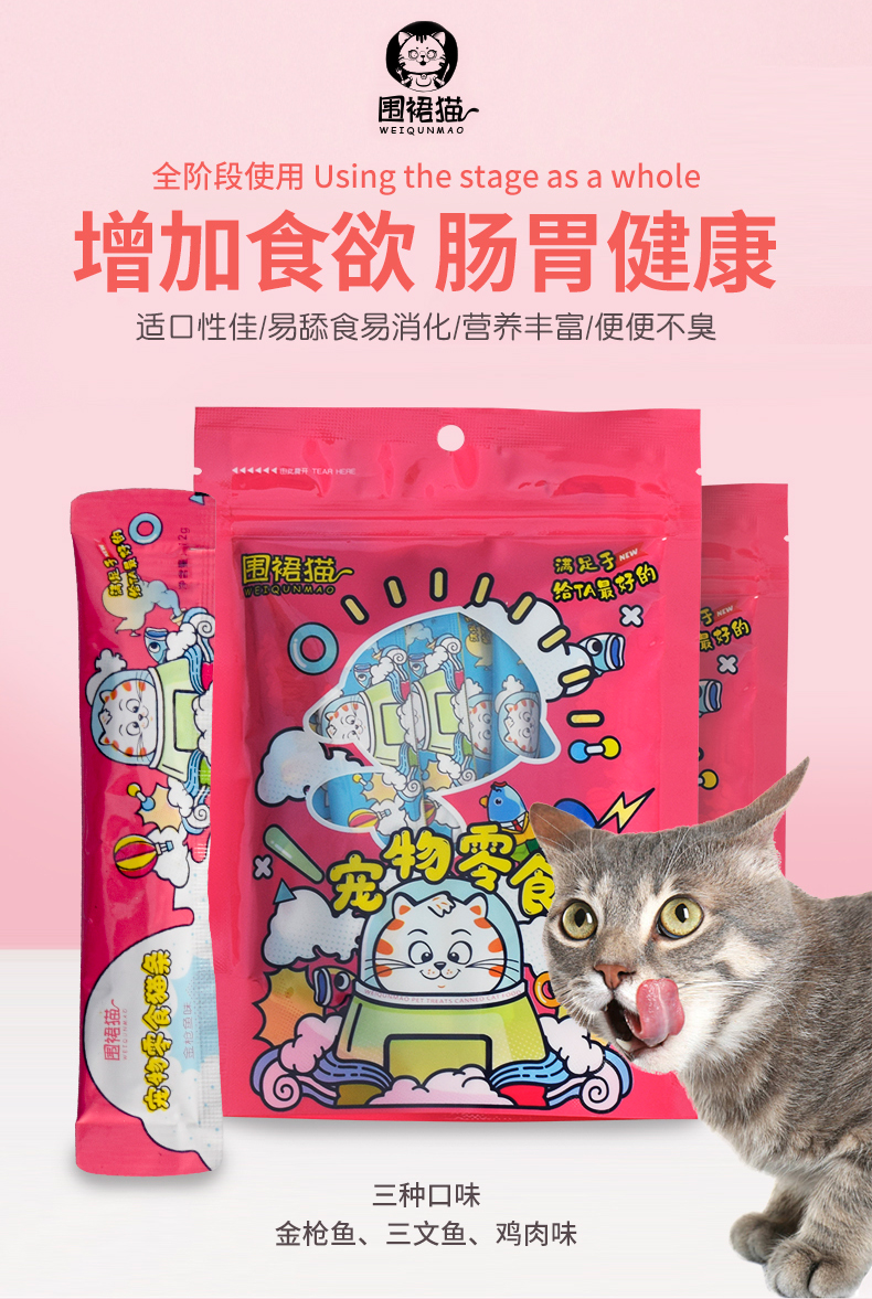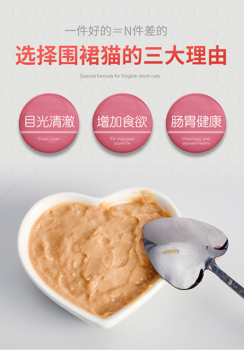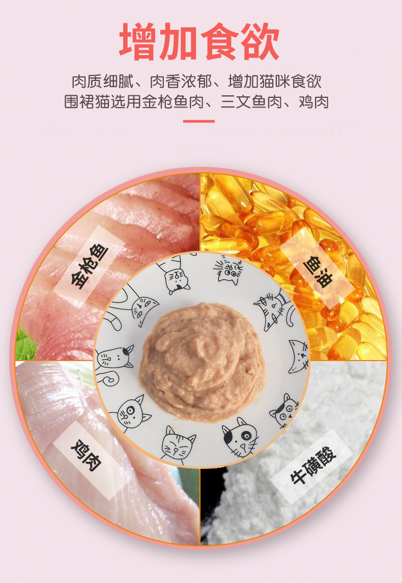 围裙猫选用金枪鱼肉,三文鱼肉,鸡肉,添加茶多酚和维生素,促进消化道运动,易消化,不呕吐泻肚,肉质细腻,肉香浓郁,增加猫咪食欲,三种口味供您选择劵后只要5.9元!速抢!