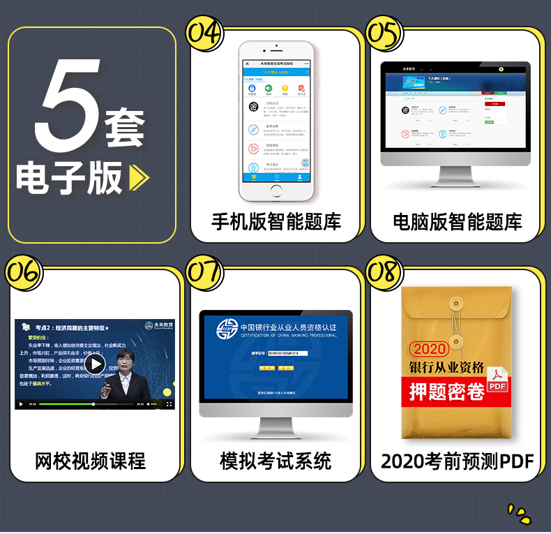 2020全套6本,教材+试卷+考点+视频软件,解破思维密码,唤醒记忆,提高学习效率,银行专业,助你一次拿证!