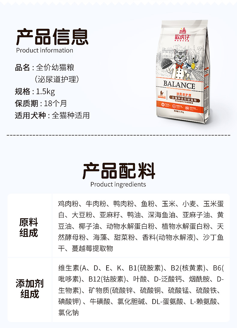 麦富迪欢虎仔泌尿全价幼猫粮1.5kg