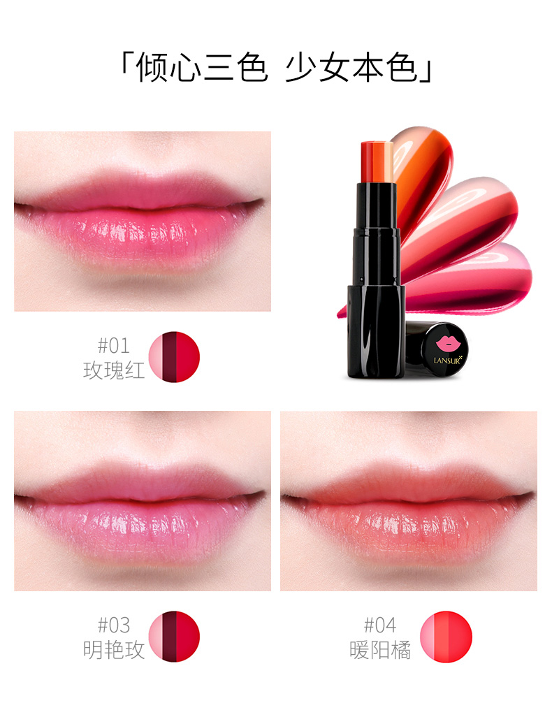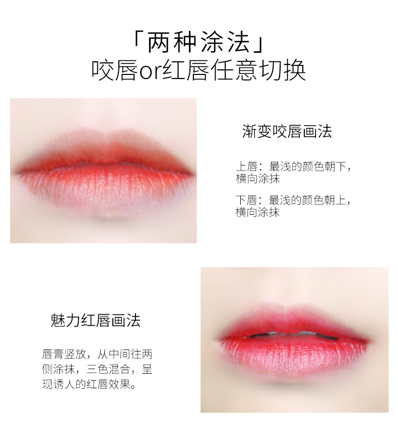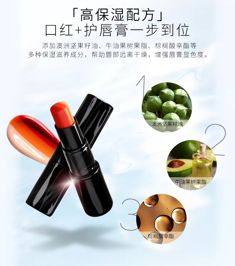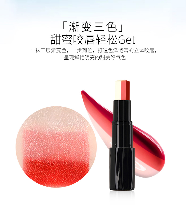 口红+护唇膏一步到位,润而不腻,补水保湿,一抹三层渐变色,一步到位,呈现鲜艳明亮的甜美好气色,嘴唇如同樱桃般水嘟嘟【赠送运费险】