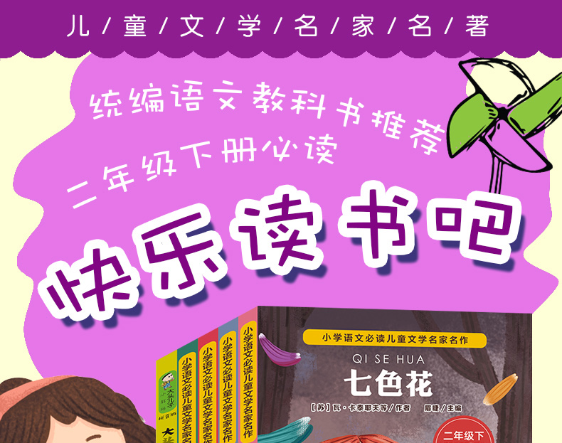 【超值秒杀!5册】七色花、愿望的实现、神笔马良、抽陀螺、大头儿子和小头爸爸,紧贴语文新课标要求,打造素质阅读经典系列丛书,精美插图内容生动,标注拼音自主阅读【正版包邮】