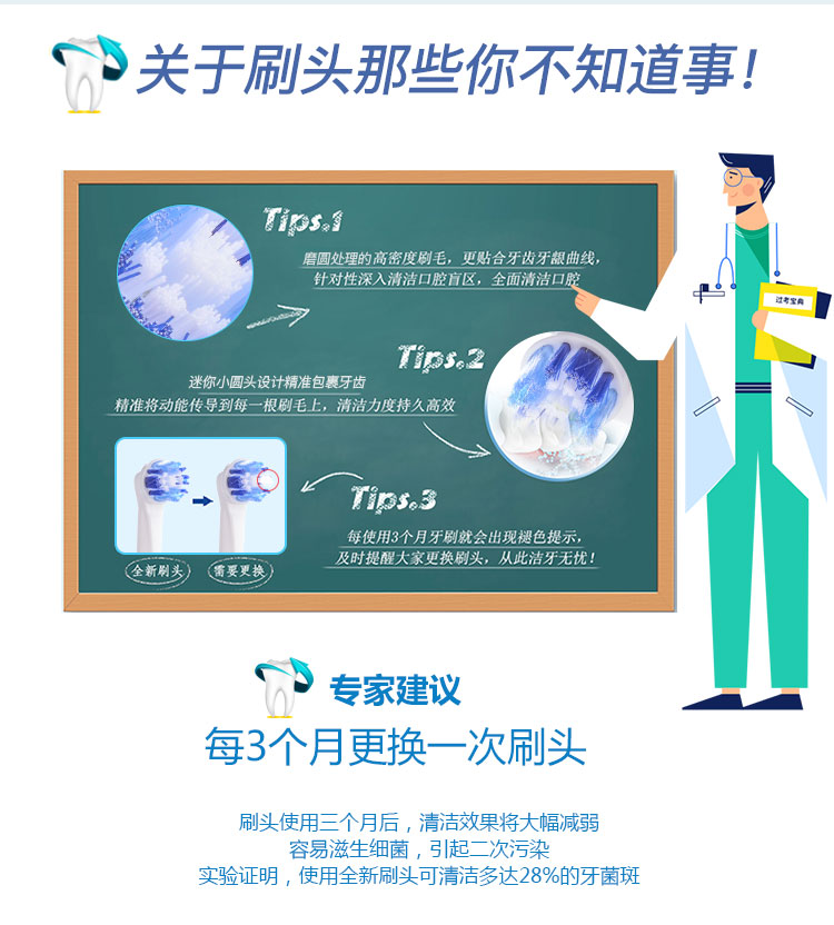 抛光提亮,闪耀动人,独立包装干净卫生,多款可选,对牙齿内部也能清洁到位,值得购买,下单就送旅行套盒一个。