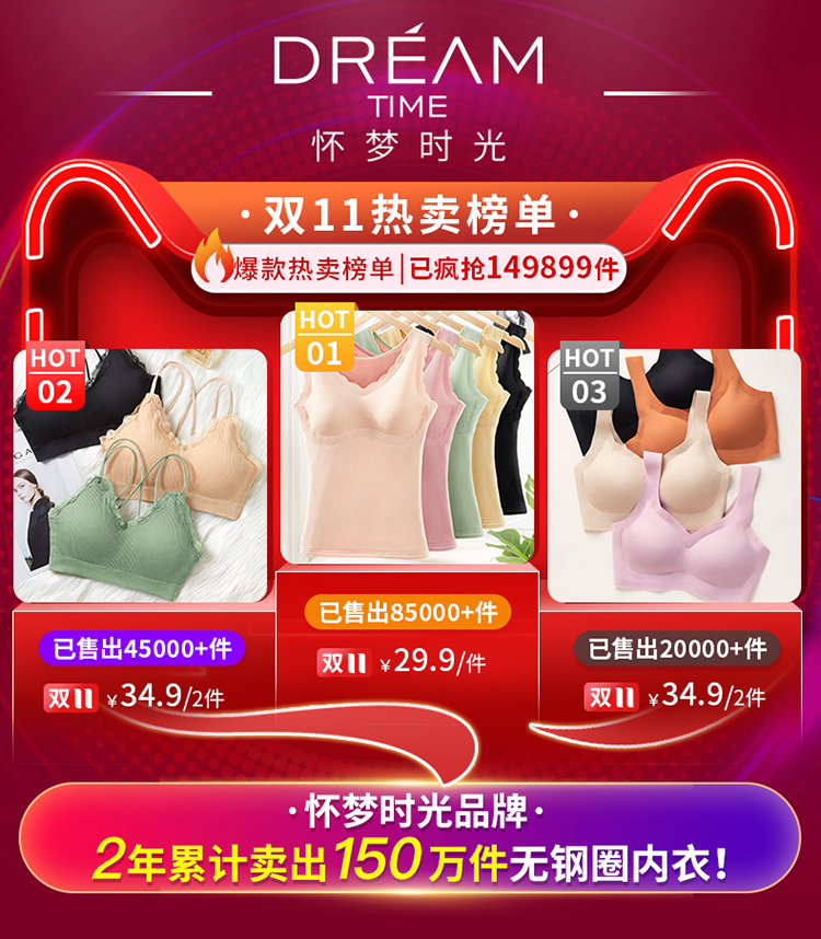 4.8高评!14W+累计评价!黄圣依女神代言的,自带胸垫,无钢圈不束缚!穿它不压胸!让你远离乳腺疾病!还是聚拢透气的款,不跑位,防下垂!穿着更舒服!活动只要19.9!赶紧带回家!