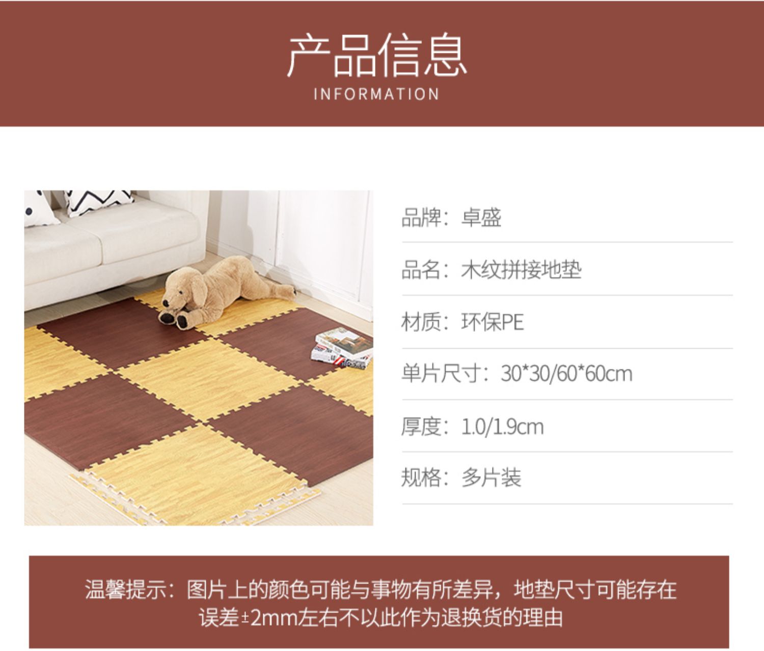 健康环保无异味,隔音抗震防滑,防冷防潮不着凉,多色自由搭配,紧密拼接,多场景适用~为优越家居而设计!赠运费险