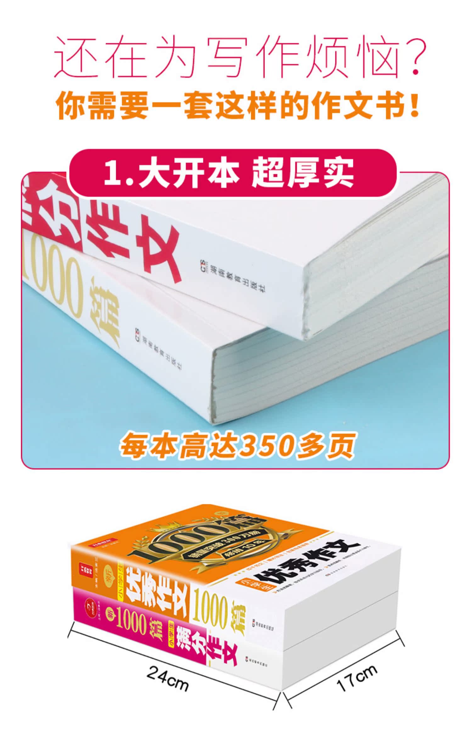 【706页加厚版】【满分作文1000篇+分类作文1000篇】2本搞定小学作文,一直用到6年级,小学生读练写考多功能作文百科全书,书本的质量和内容都很好。 26.8 5 21.8