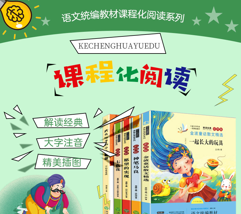 学校指定书目,班主任推荐,统编教材指定阅读,大字注音,精美卡通插图,扫码可听,边听边看,边听边读,让孩子快速掌握阅读的技巧,抓住重点,快速提升阅读能力!