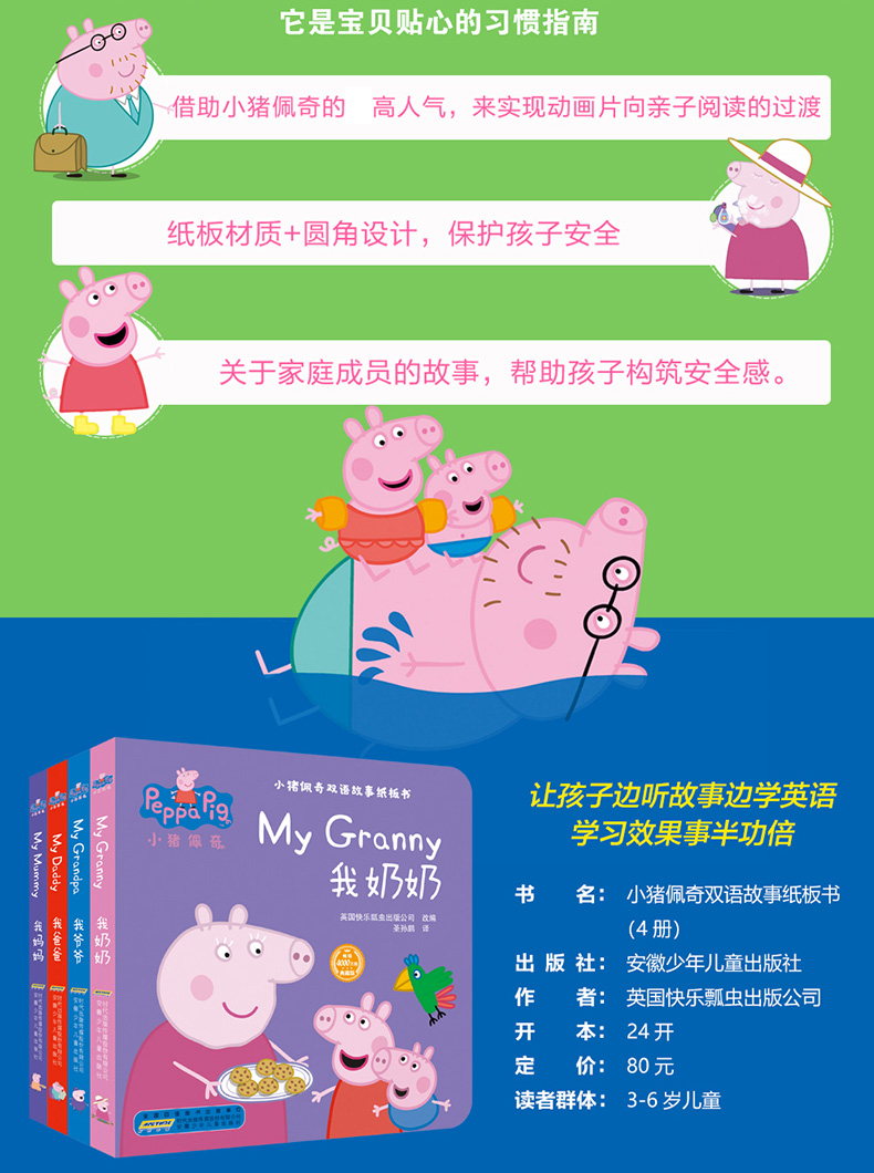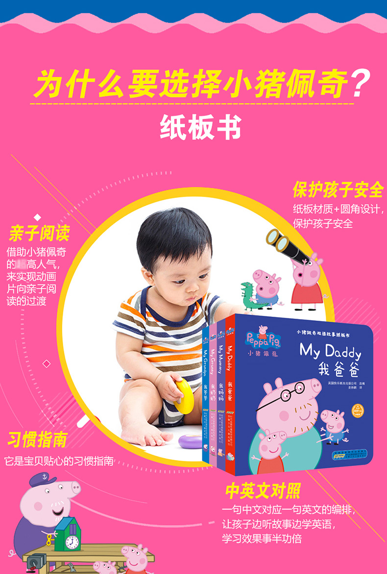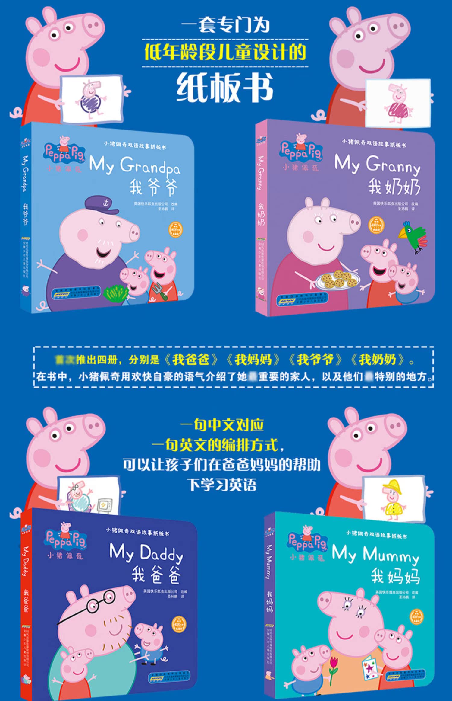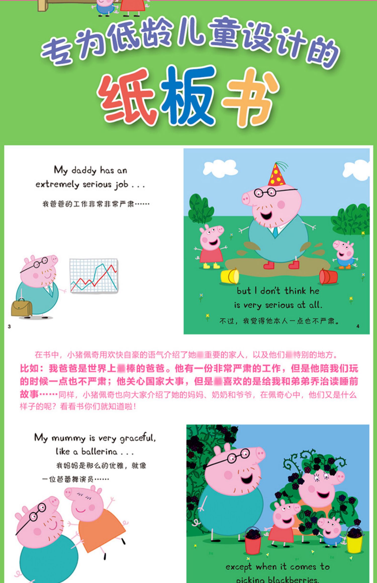 【小猪佩奇双语故事书】专为低龄儿童设计的纸板书,让孩子边听故事边学英语,学习效果事半功倍,帮助孩子构筑安全感~【赠运费险】