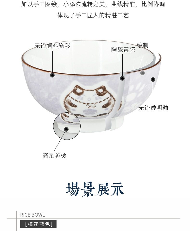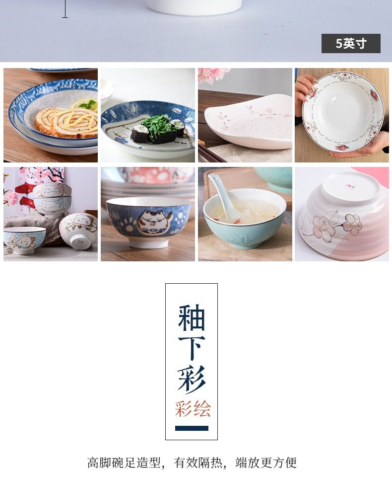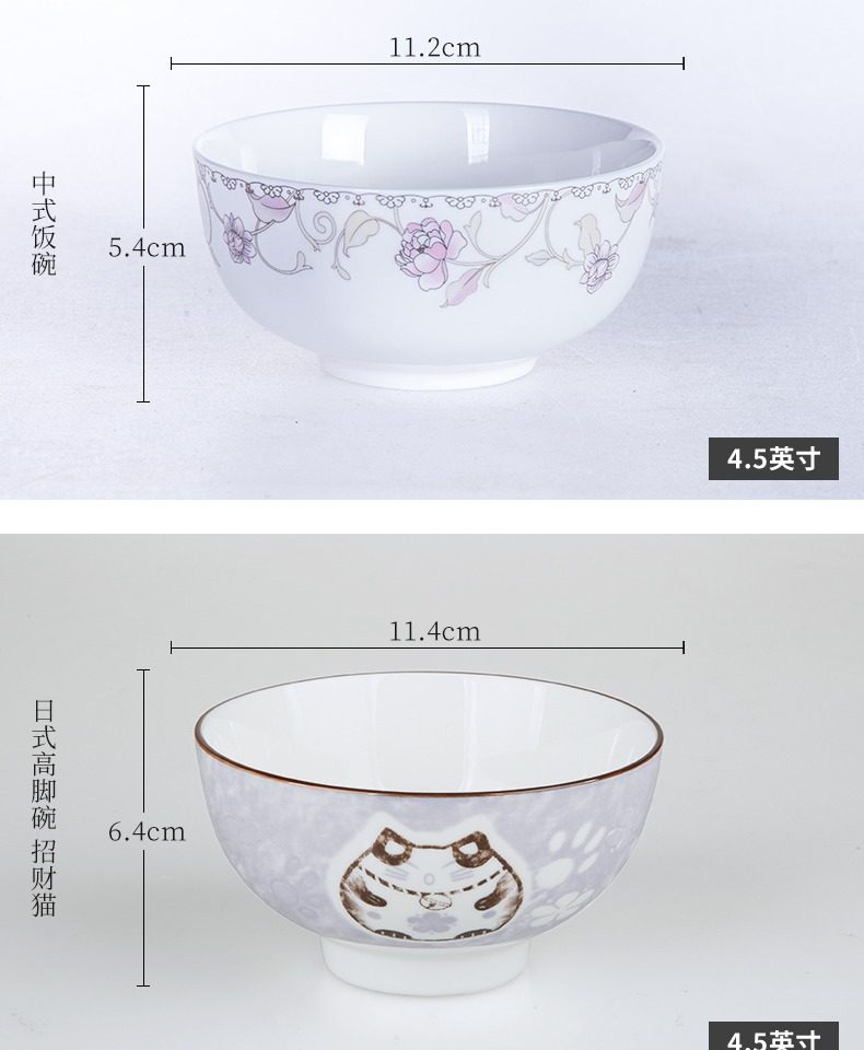 【天猫正品】家用陶瓷碗套装4.5寸,结实耐用,瓷质好,可微波,易清洗,图案可爱丰富,高温烧制,健康环保,家家必备,经过无害化处理,为您的家庭健康保驾护航。【赠运费险】