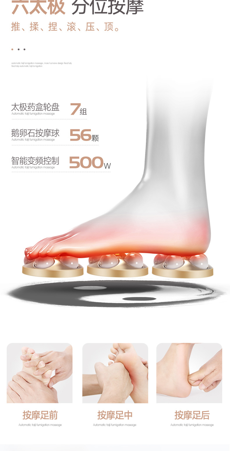 独有8D太极揉捏按摩球,自动恒温加热,多种模式可选,水电隔离更安全,揉顶压捏多种手法,享受真人般的按摩待遇~