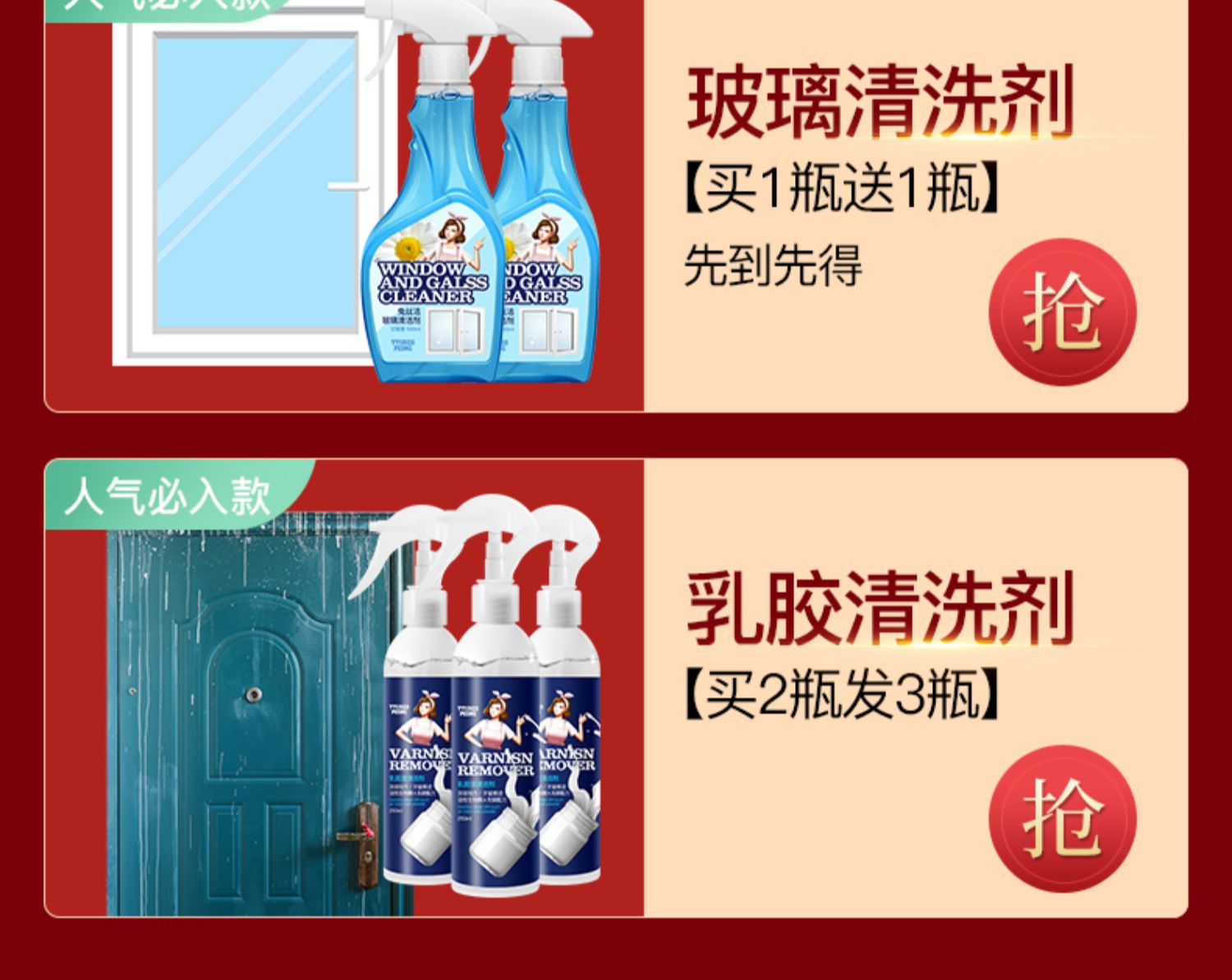 【拍1发2瓶,送玻璃刮,拍2发4瓶,送玻璃刮+加赠防雾剂1瓶】过年囤货!玻璃清洁剂,擦窗玻璃水,清洁喷雾淋浴房清洗剂,一瓶在手搞定家里所有,去污快操作方便,无需冲水,省时更省力。【赠运费险】