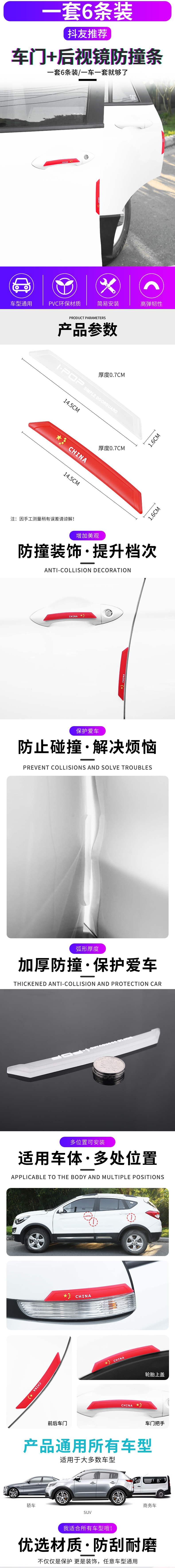 【6条装】透明隐形,通用车型,保护车漆,软加厚,安装不影响颜值,防刮耐磨,汽车车门以及后视镜均可用,保护爱车