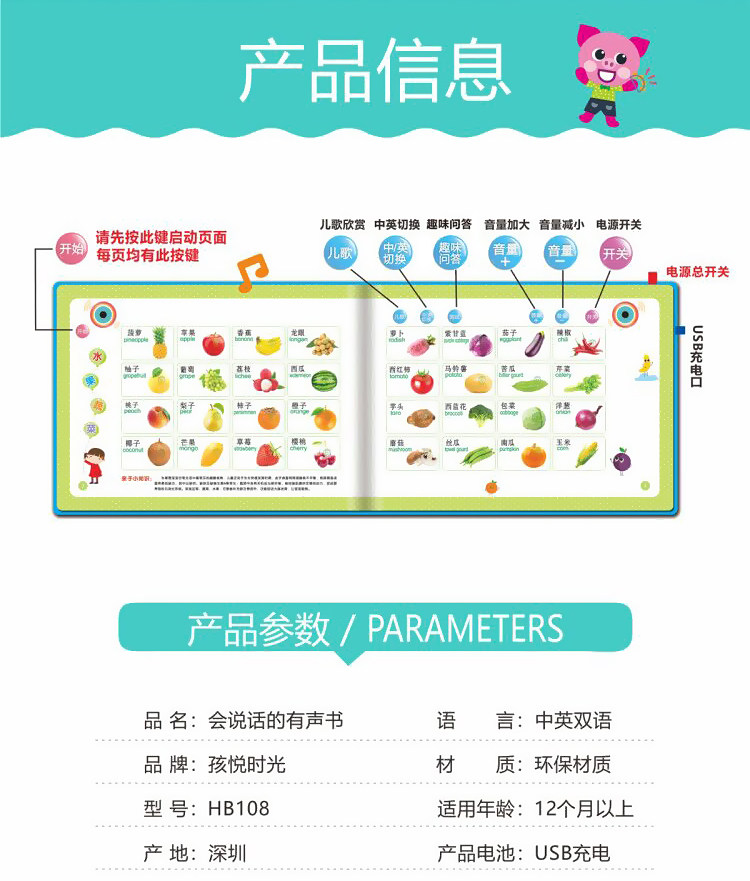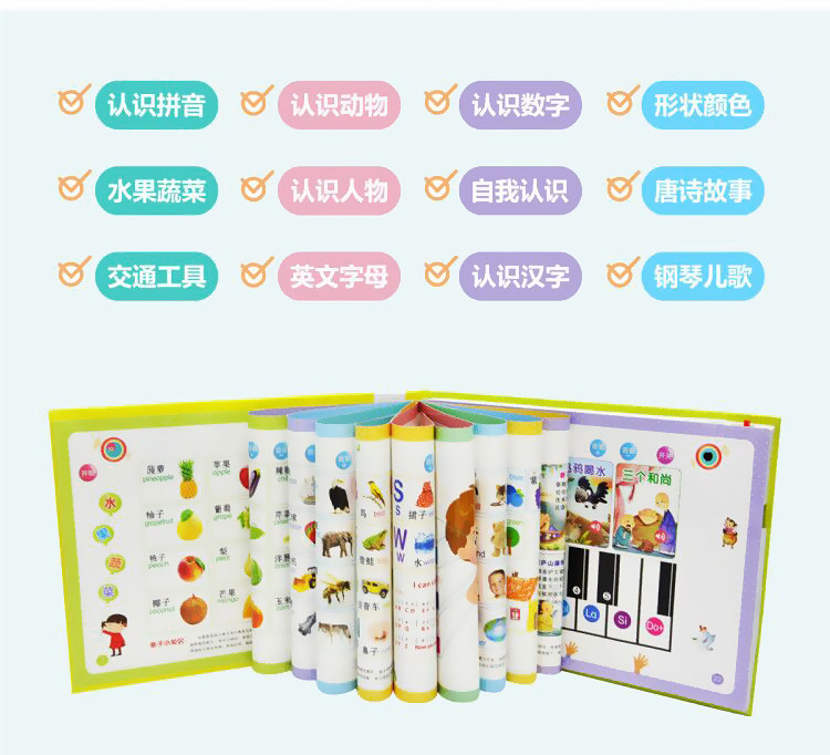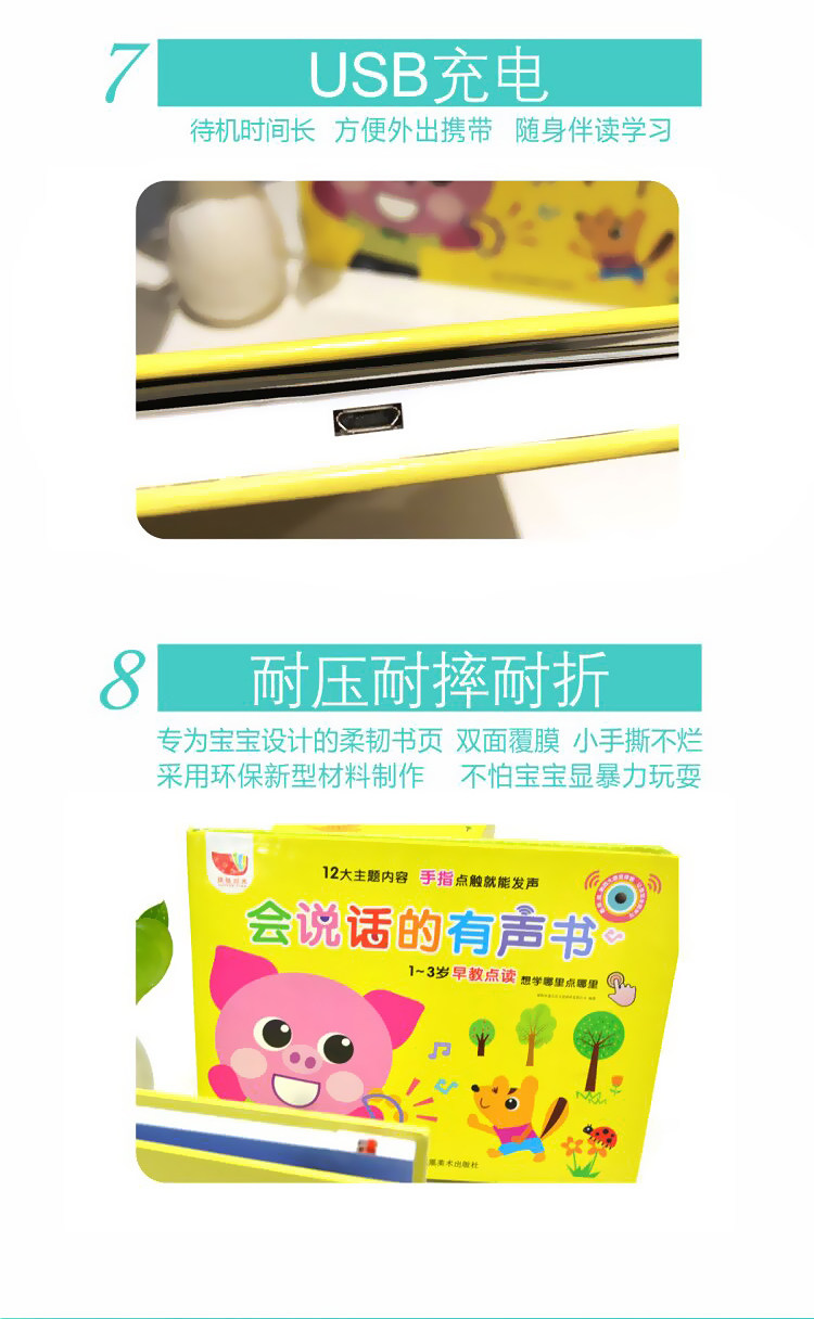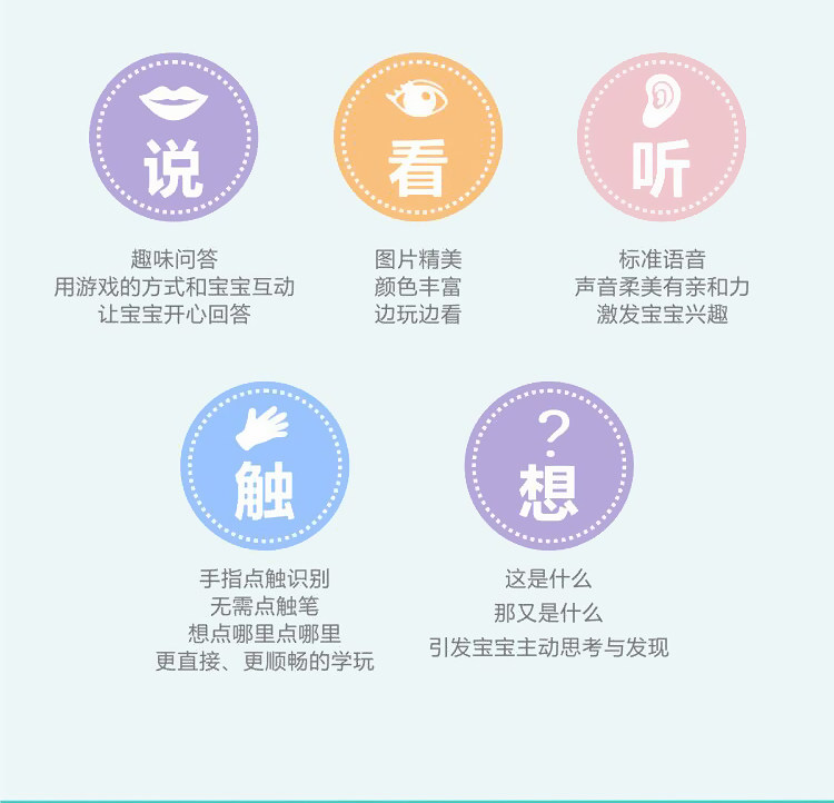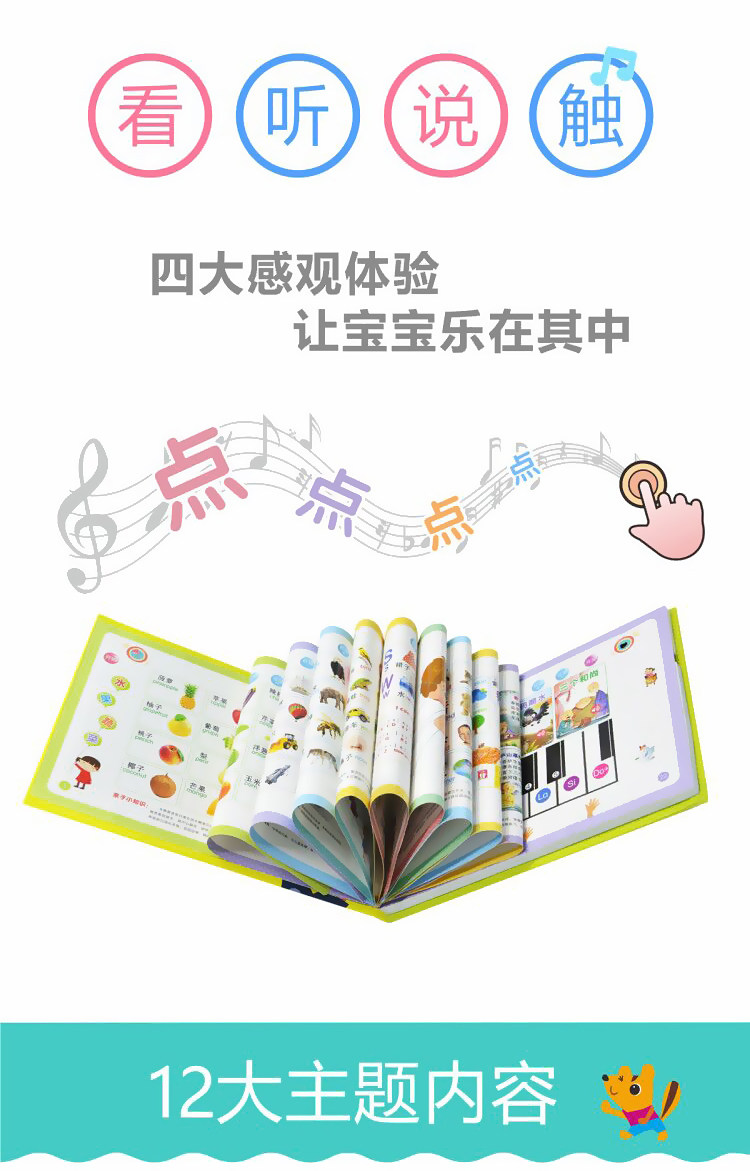 【附带数据线】趣味早教边学边玩,想学哪里点哪里。12大主题内容,趣味问答用游戏的方式和宝宝互动,精美图片颜色丰富,手指点触识别,标准语音激发宝宝兴趣。【赠运费险】