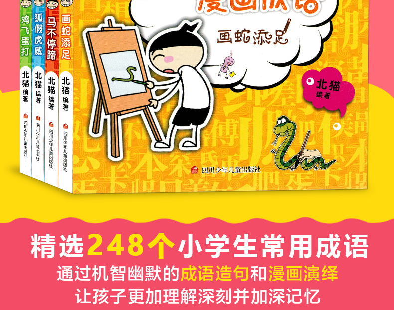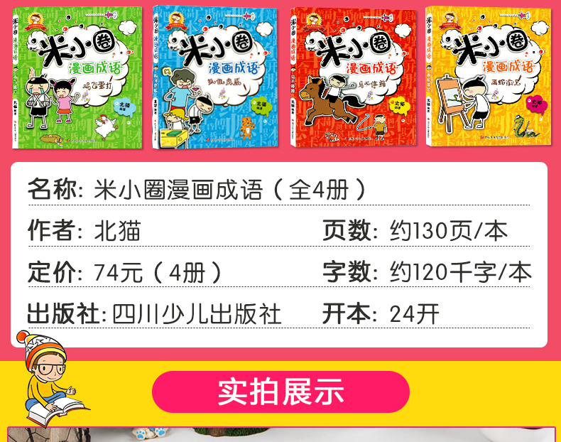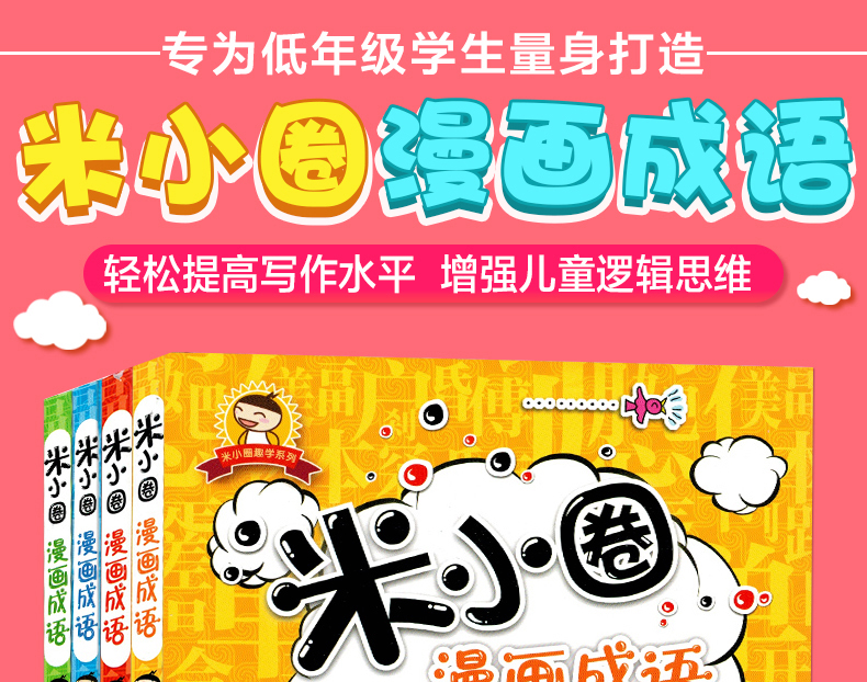 米小圈漫画成语全套4册,图文并茂,方便阅读,趣味学成语,寓教于乐,搞笑幽默的漫画形式,让孩子在快乐中积累知识!快给孩子囤一套!(赠送脑筋急转弯一本,定制徽章一枚,精制贴纸2张)