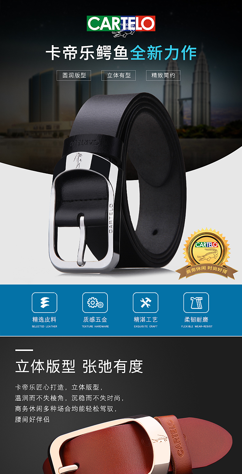 【送钥匙扣+螺丝刀+打孔器】卡帝乐鳄鱼,专柜品牌,品质授权,简单大气,双面带身使用,手感柔软,低调儒雅,送给男人的贴心礼物