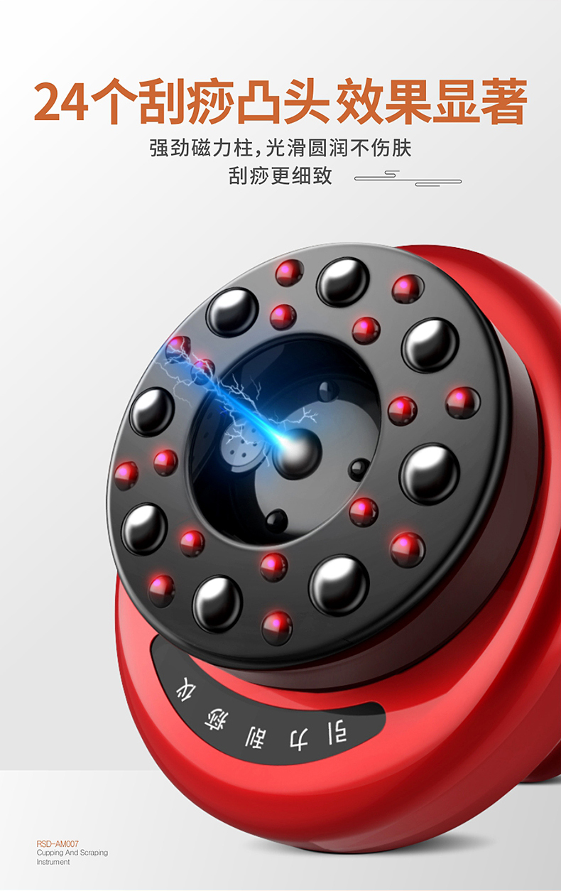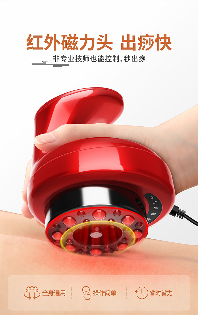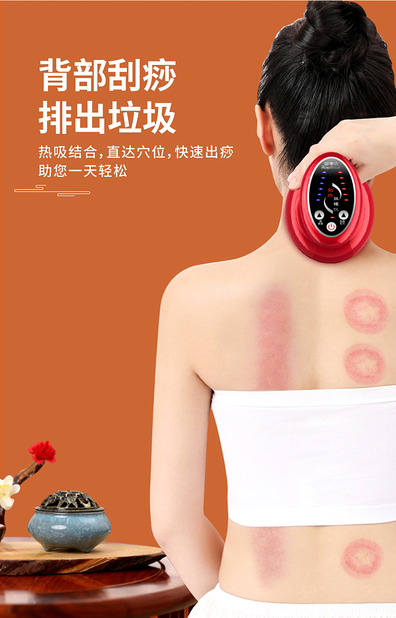 刮痧+拔罐+瘦身于一体的多功能刮痧理疗仪,出痧更快,痛感更轻,按摩经络,疏通淋巴排毒,磁波按摩,深层调理,全方位改善各种亚健康!